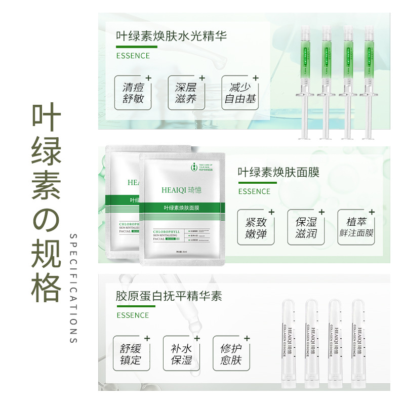 | nameOriginal | Special Chlorophyll Skin Rejuvenation Kit for Beauty Salon Fading Pockmarks Hydrating Moisturizing and Improving Skin Facial Care Kit |