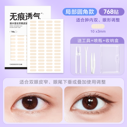 | nameOriginal | Special double eyelid tape that sticks to the mesh without leaving any trace when exposed to water |