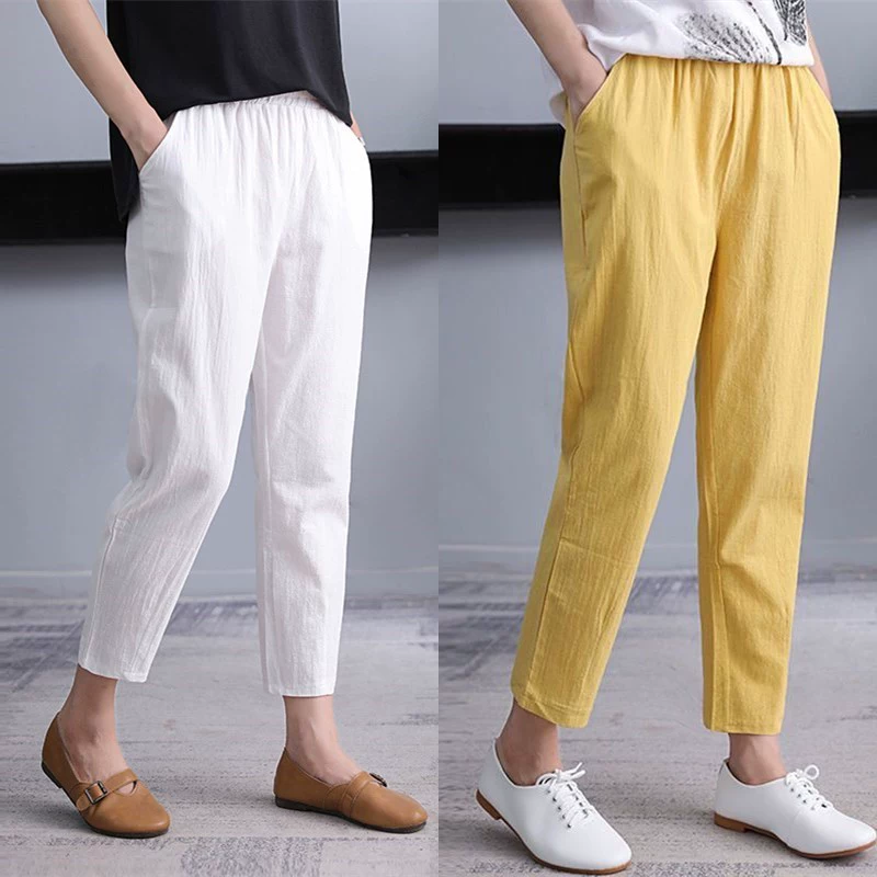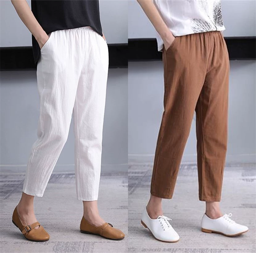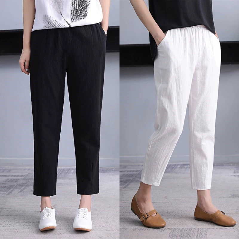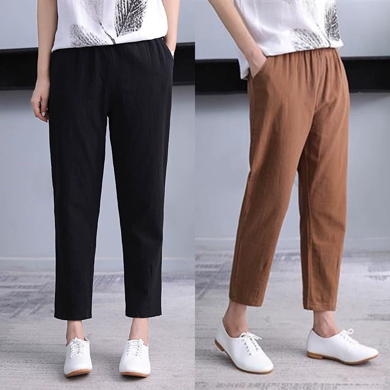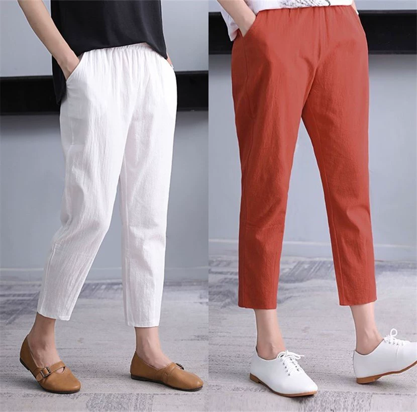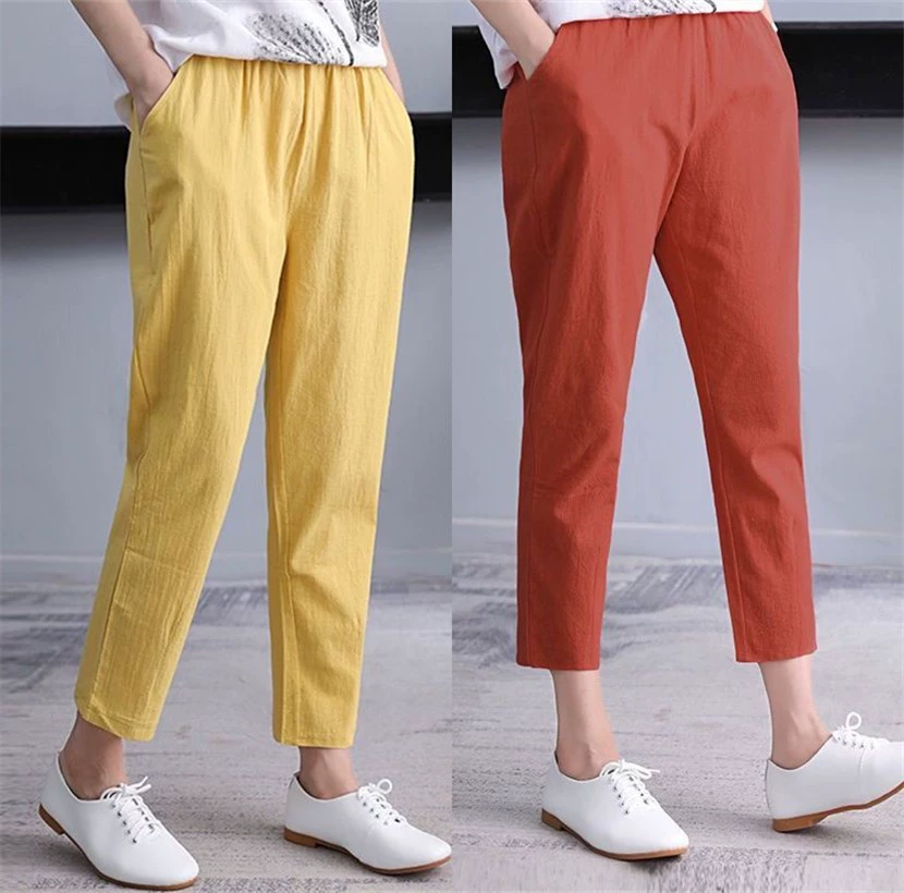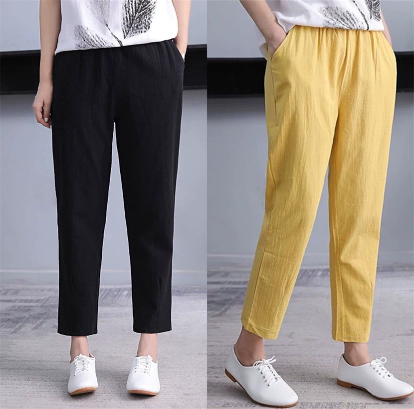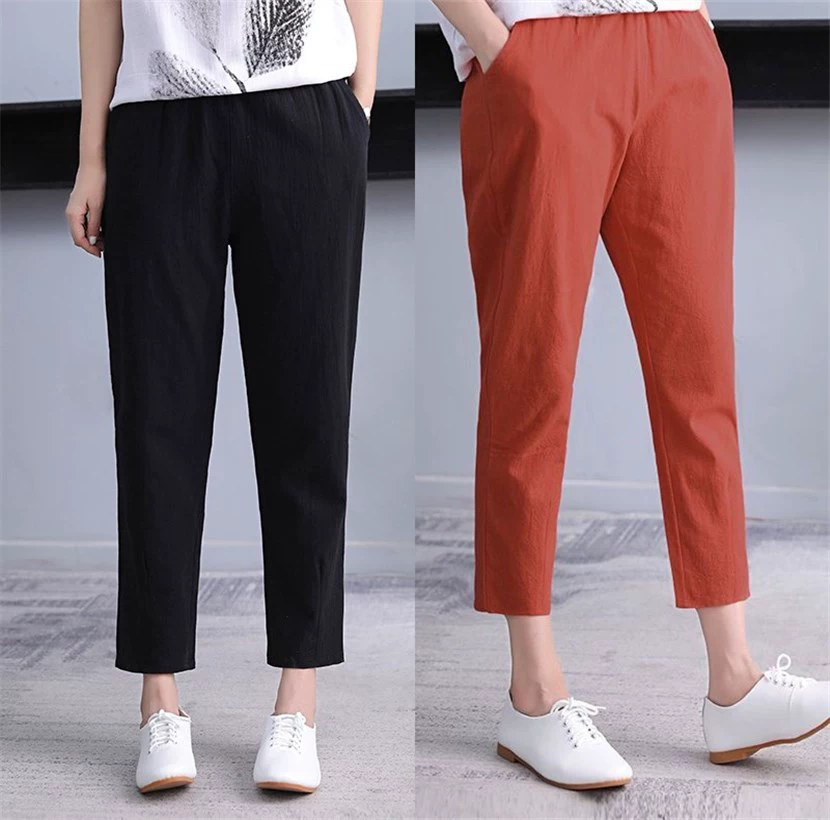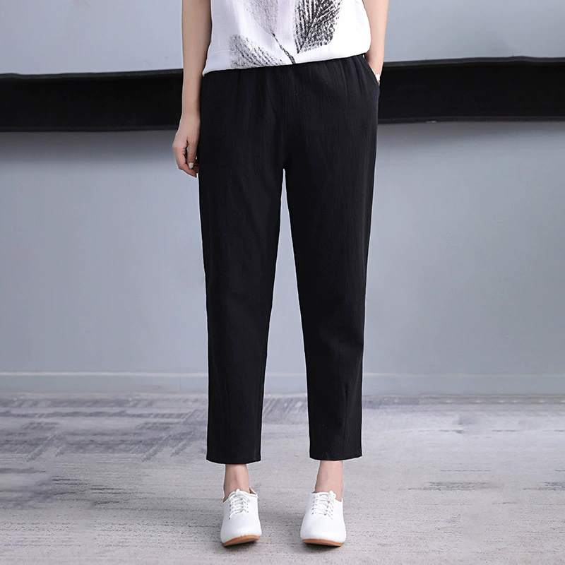 | nameOriginal | Special offer large size elastic waist thin nine-point cotton and linen pants |