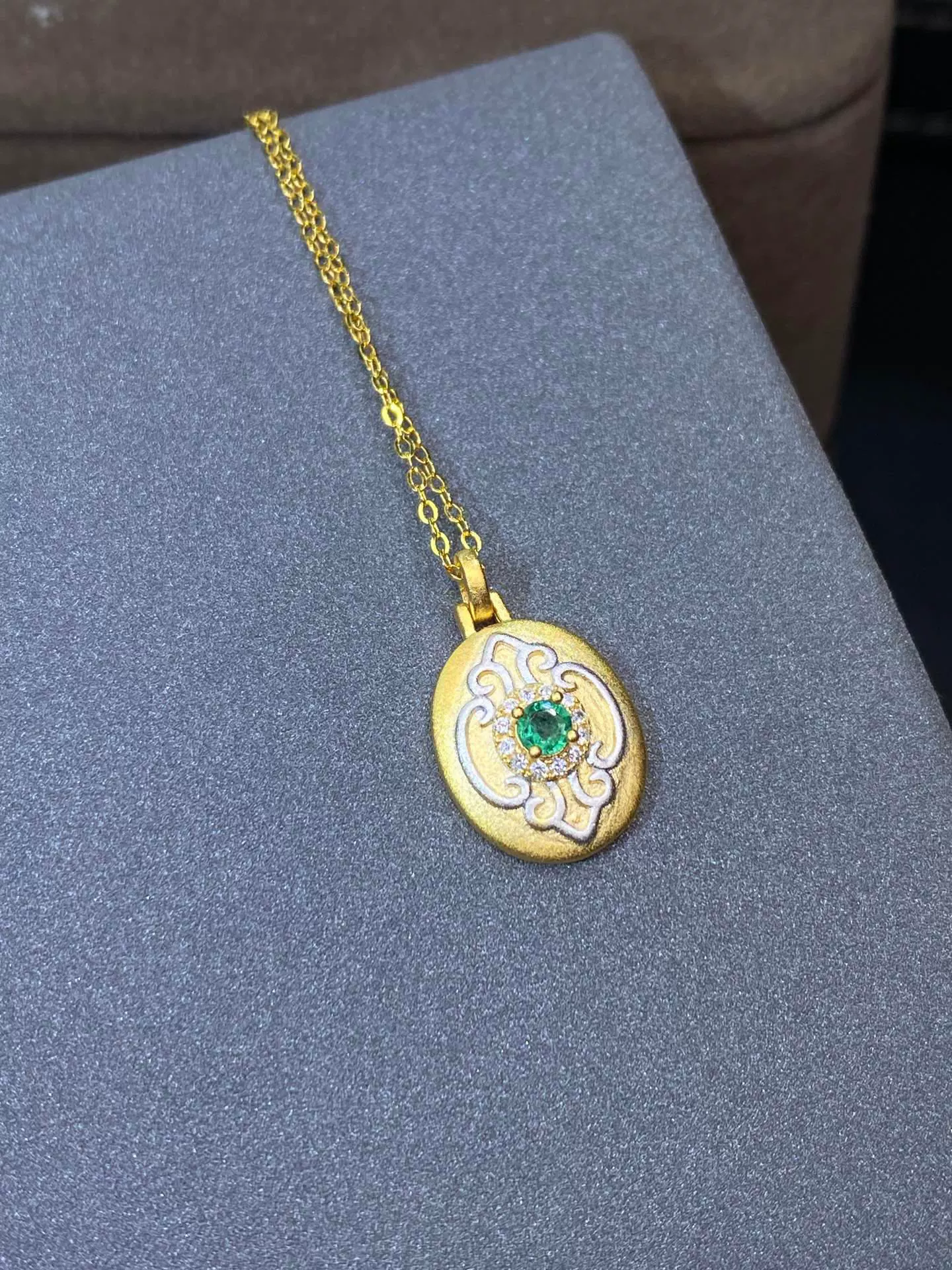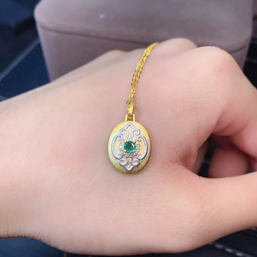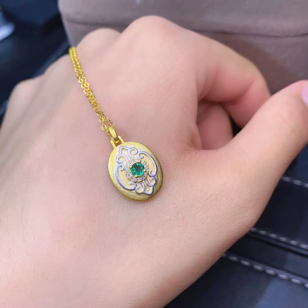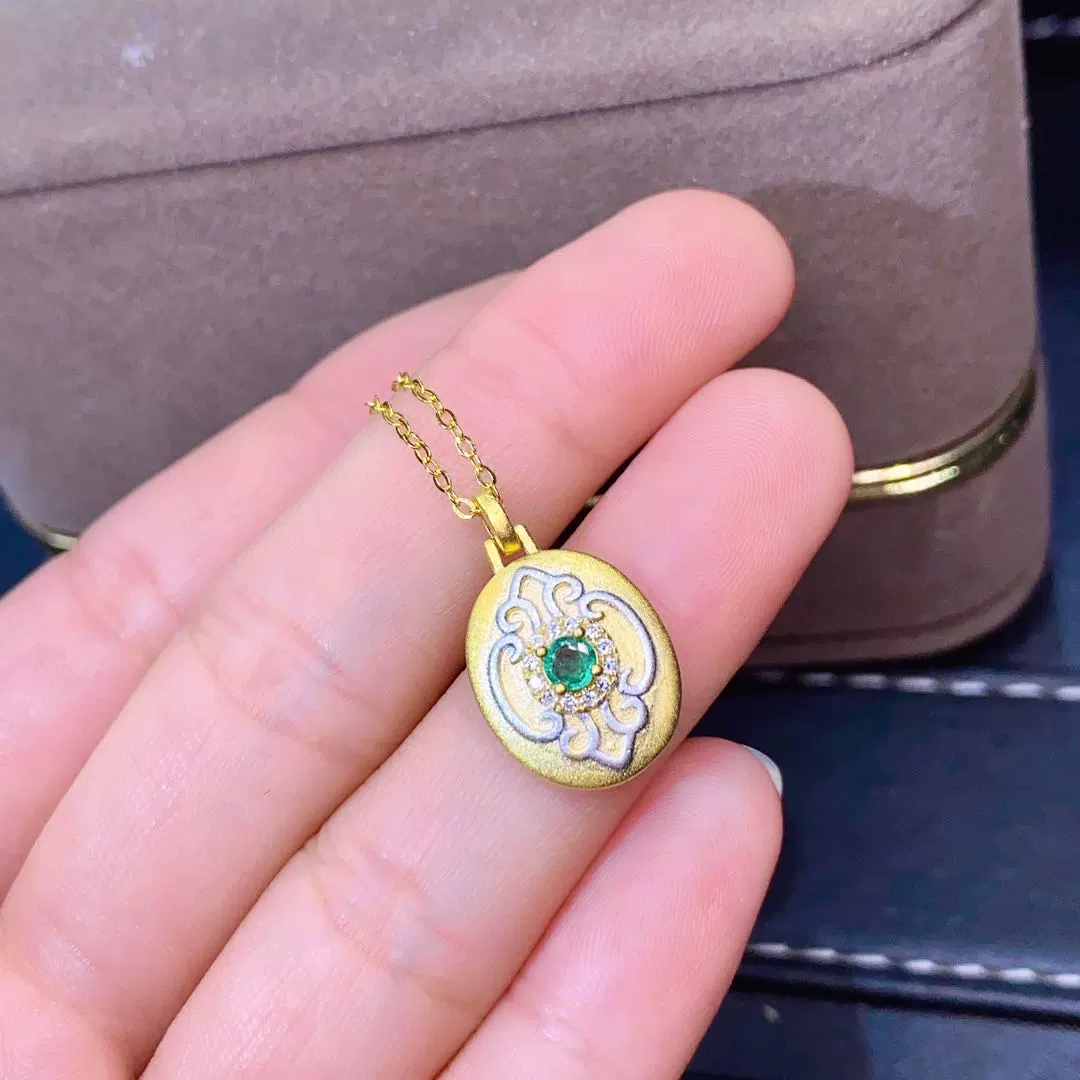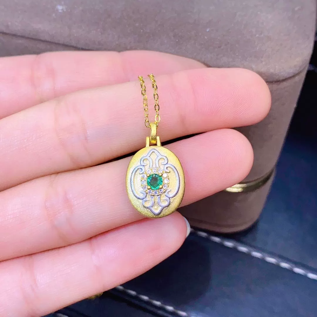 | nameOriginal | Special offer natural emerald pendant 925 silver plated with 18 gold inlaid with 3*3mm ancient craftsmanship, beautiful texture design |