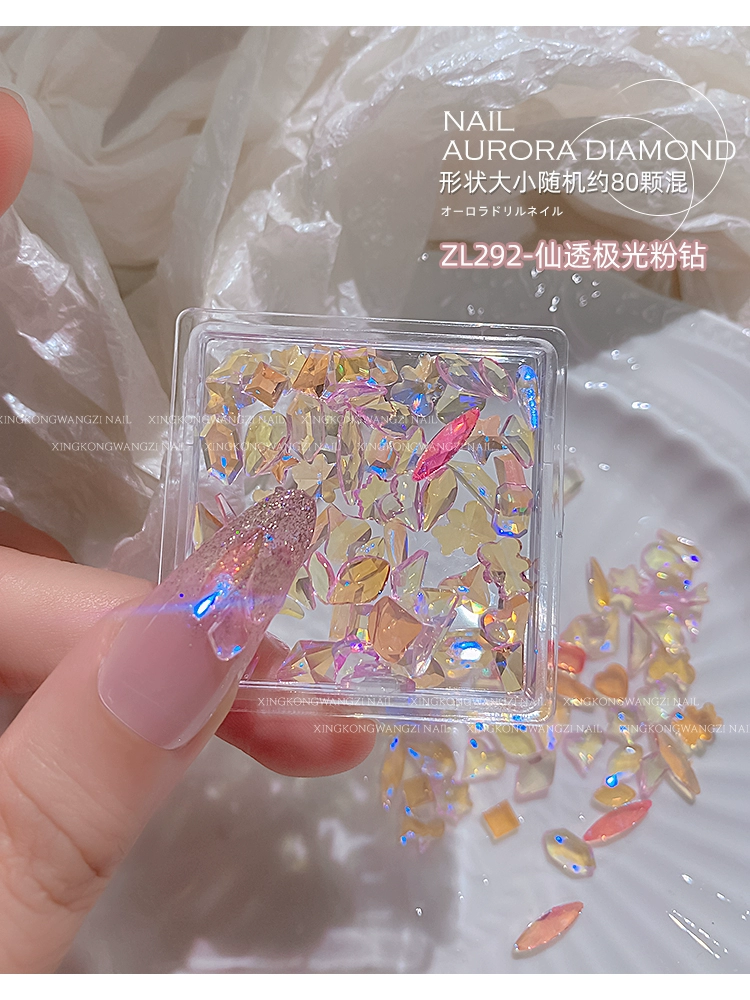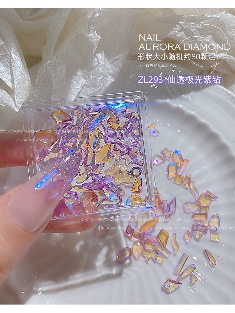 Special Shaped Diamond Popular Champagne Pink Purple Glass Manicure