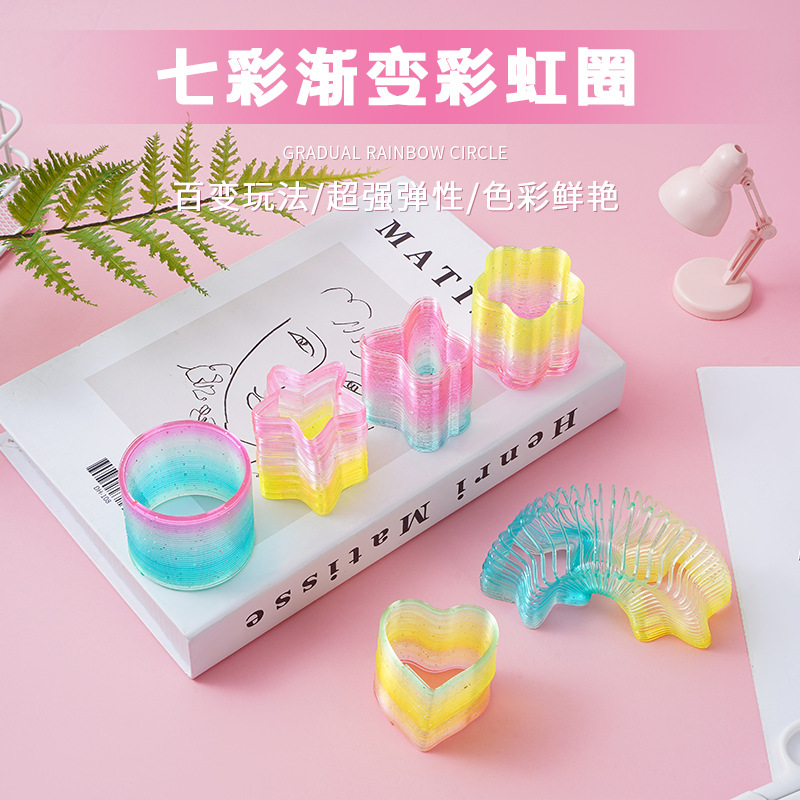 Special-shaped spring rainbow circle children's educational toys colorful circle telescopic elastic circle magic circle kindergarten small gift