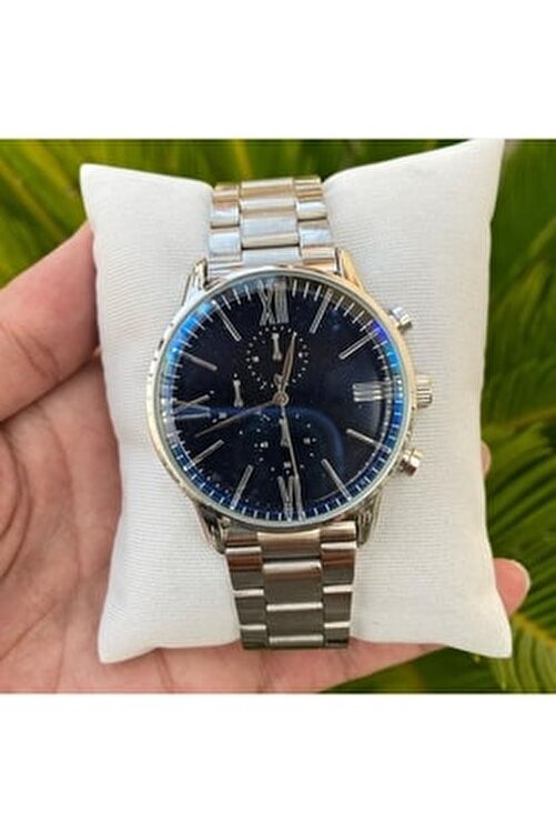 Analog metal men’s wristwatch does not rust blackening. It can be adjusted conveniently to the wrist. Silver cord black dial is two colors. The case diameter is 45 mm. In-dial black in-dial indicators are for decor purposes.