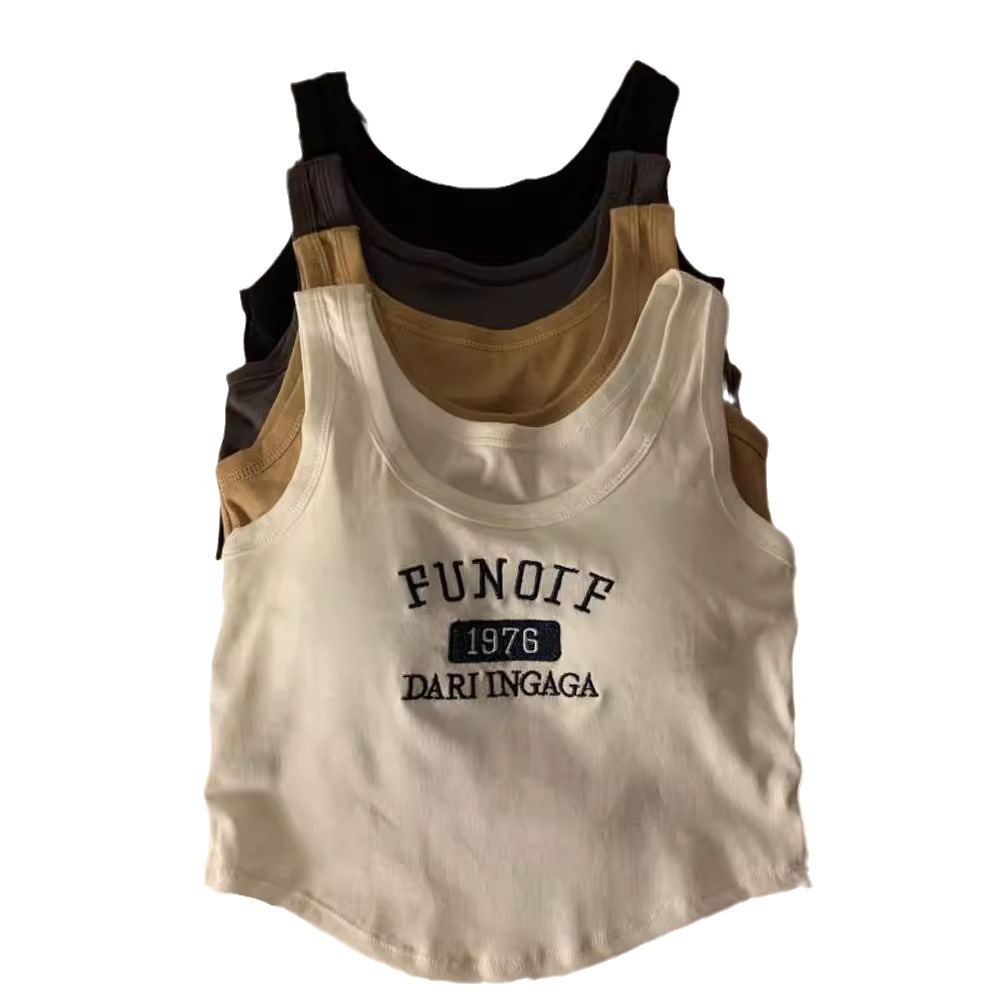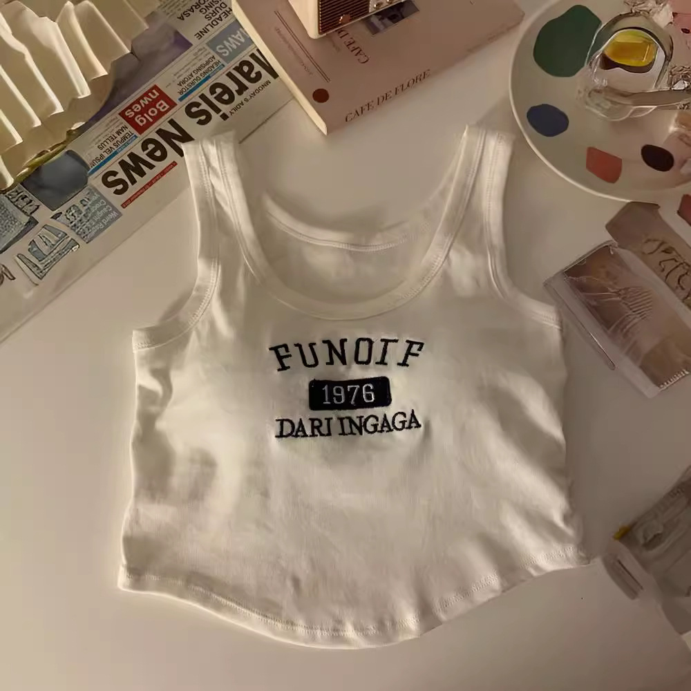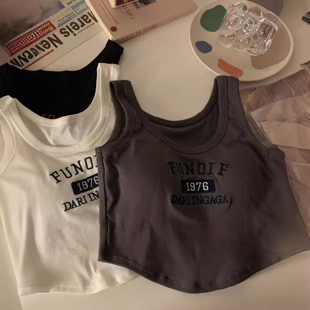 Spice Girl Short with Chest Pad Inner Small Camisole White Base Summer Outer Wear Slim Sports Top Women's Fashion
