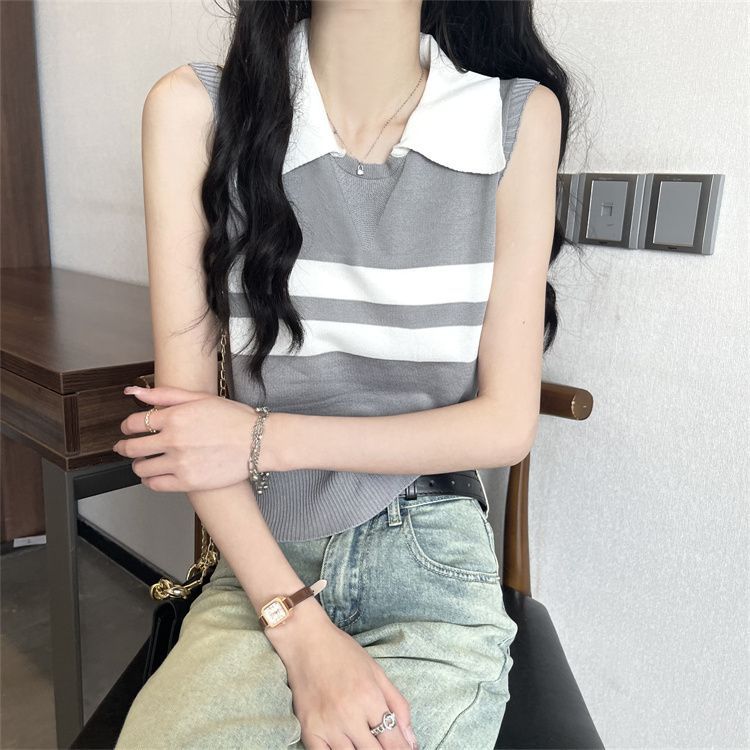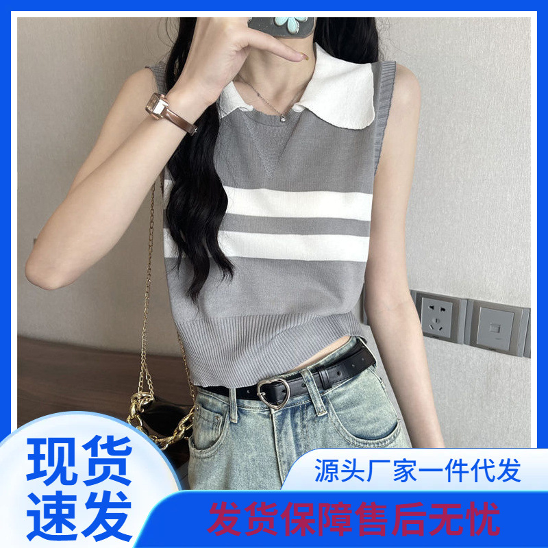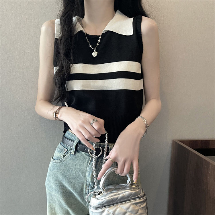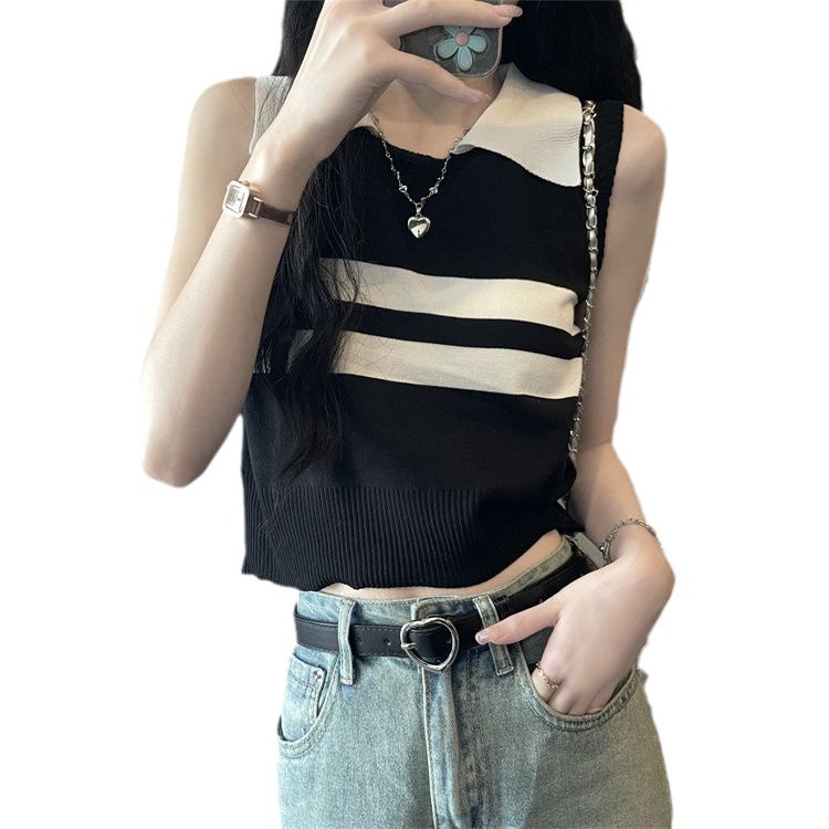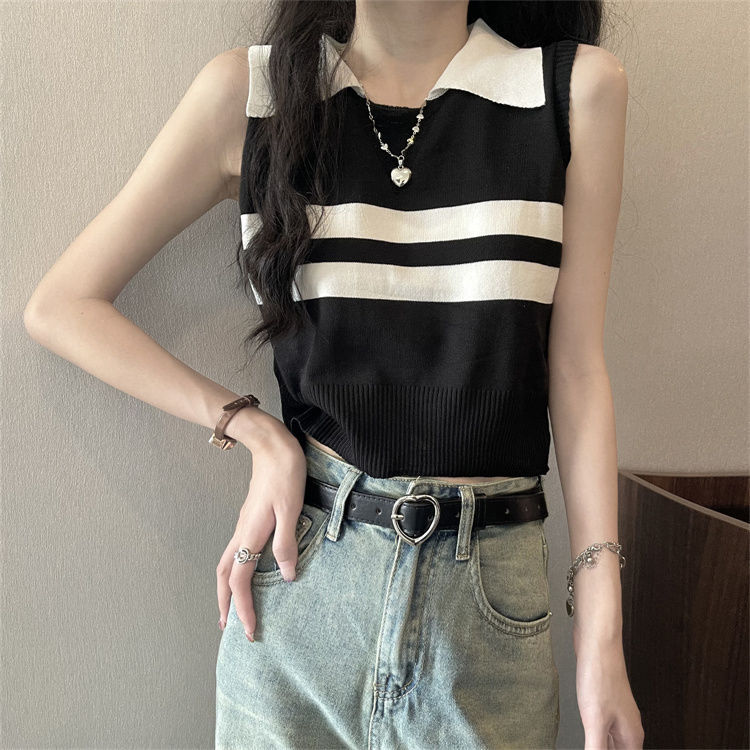 | nameOriginal | Spice Girl Striped Knitted Vest Sling Summer New Short Slim-fit Sleeveless Outer Wear Casual Base Top |