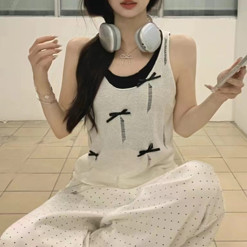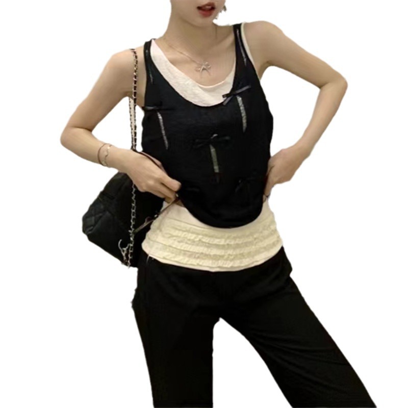 | nameOriginal | Spice Girl Style Fake Two-piece Knitted Camisole Vest Summer New Arrival Bow Rearing Niche Sleeveless Single-wear Top for Women |