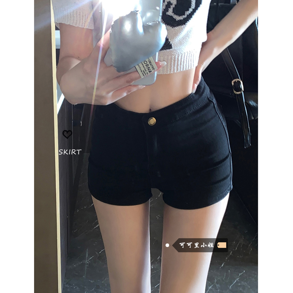 | nameOriginal | Spice Girls Denim Shorts Women's Ins Summer 2024 New High Waist Slimming Black Pants Tight Stretch Hip Hot Pants |