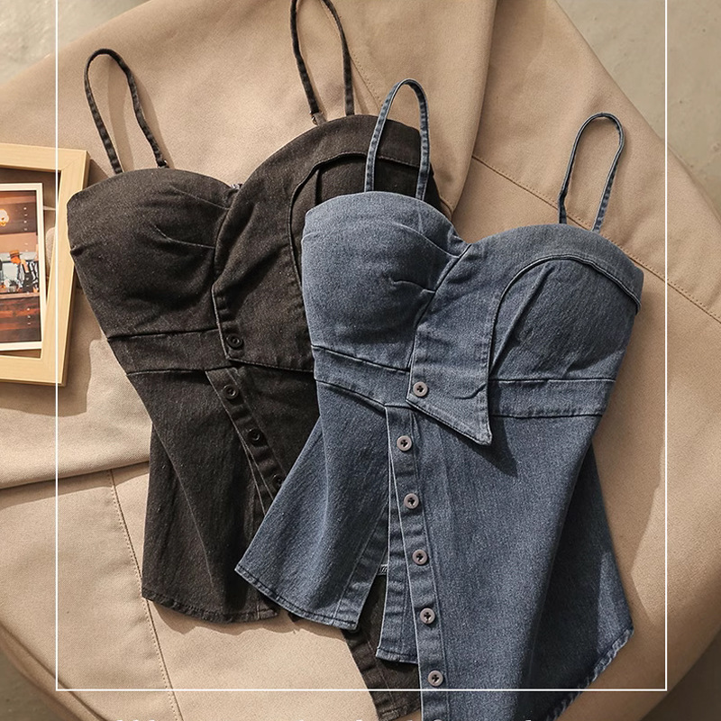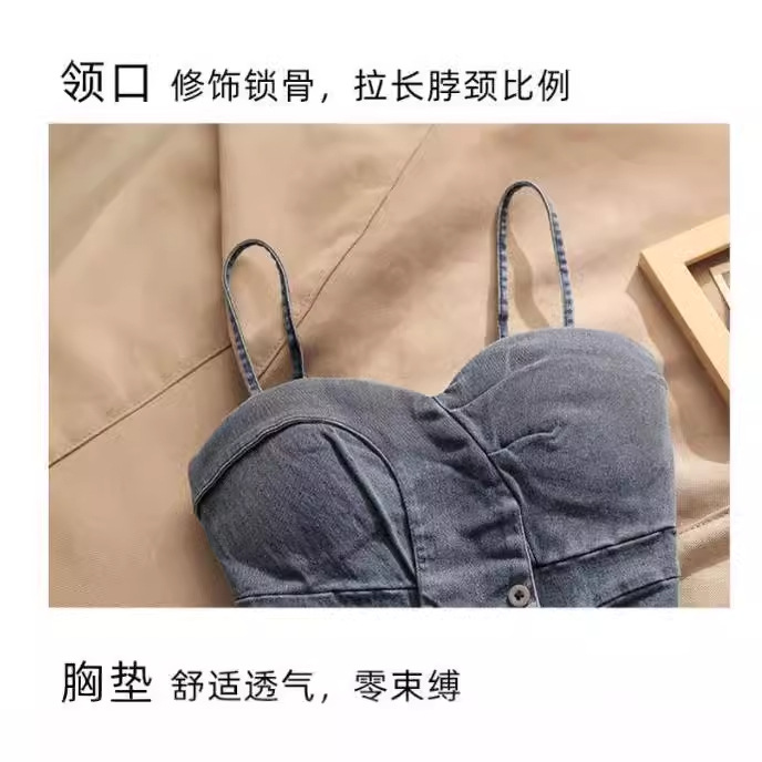 | nameOriginal | Spice Girls Irregular Denim Camisole Women's Summer Outer Wear Slim-Fit Slimming Tight Waist Design Sense Short Top Trendy |