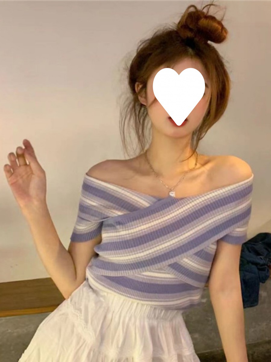 | nameOriginal | Spice Girls Pure Desire Striped Short-sleeved T-shirt Women's Summer Cross V-neck Shoulder Collarbone Short Sweet and Hot Top for Summer |