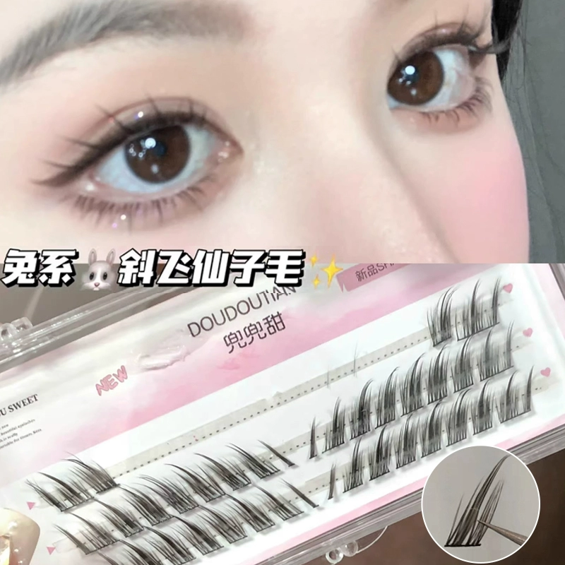 Spicy doll eyelashes! Fox single cluster false eyelashes, natural segmented fox eyes, slanted flying eye tail elongated simulation