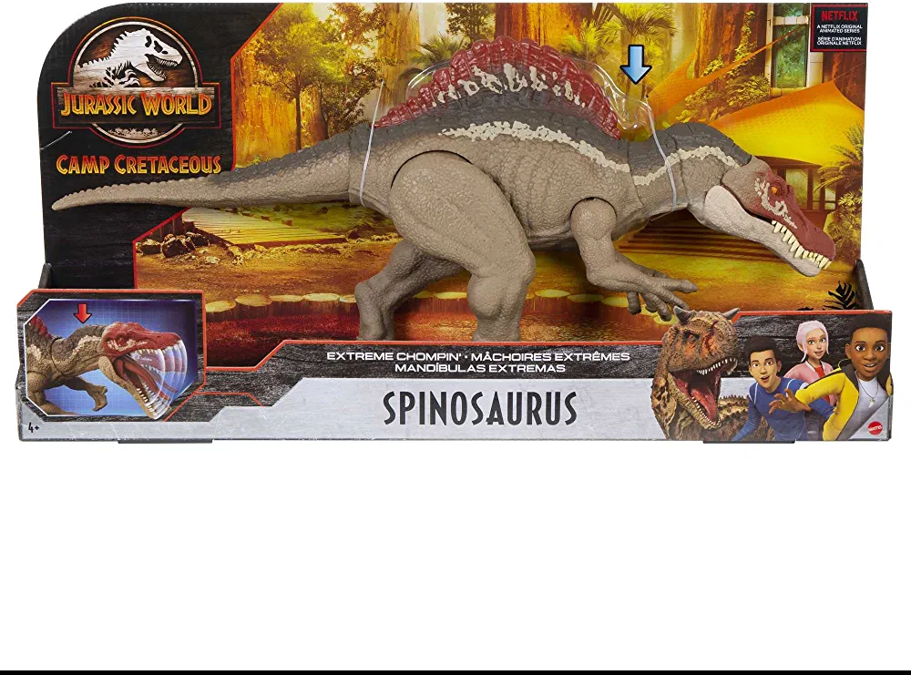 Jurassic World Extreme Chompin' Spinosaurus Dinosaur Action Figure, Huge Bite, Authentic Decoration, Movable Joints, Ages 4 Years Old & Up