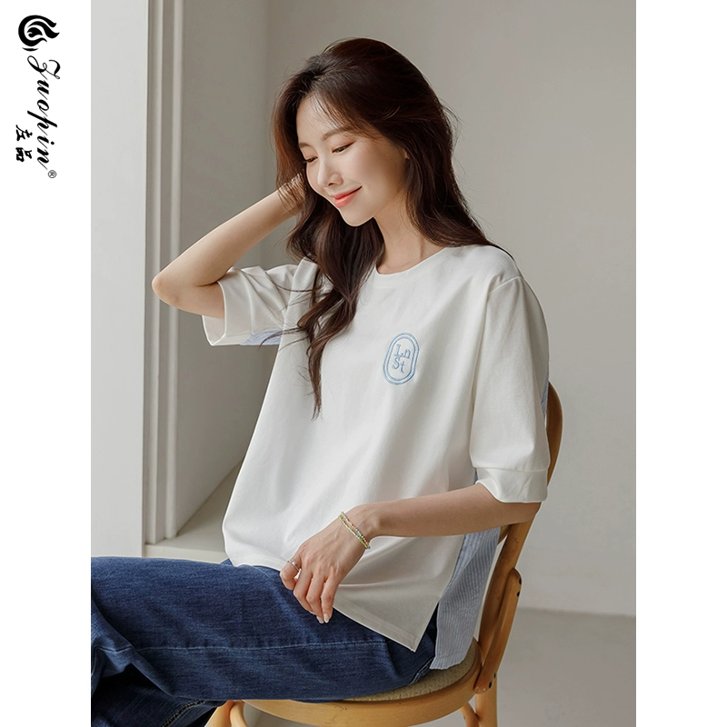 | nameOriginal | Spliced striped shirt loose niche short-sleeved T-shirt |