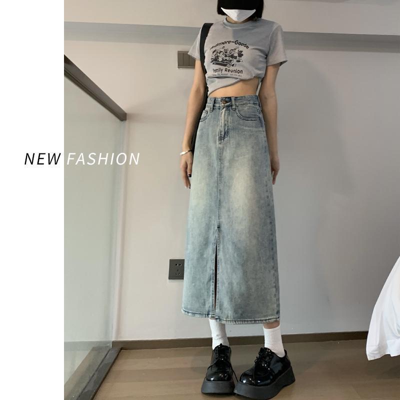 | nameOriginal | Split Denim skirt women's spring 2024 new small A- line mid-length light color high waist skirt summer |
