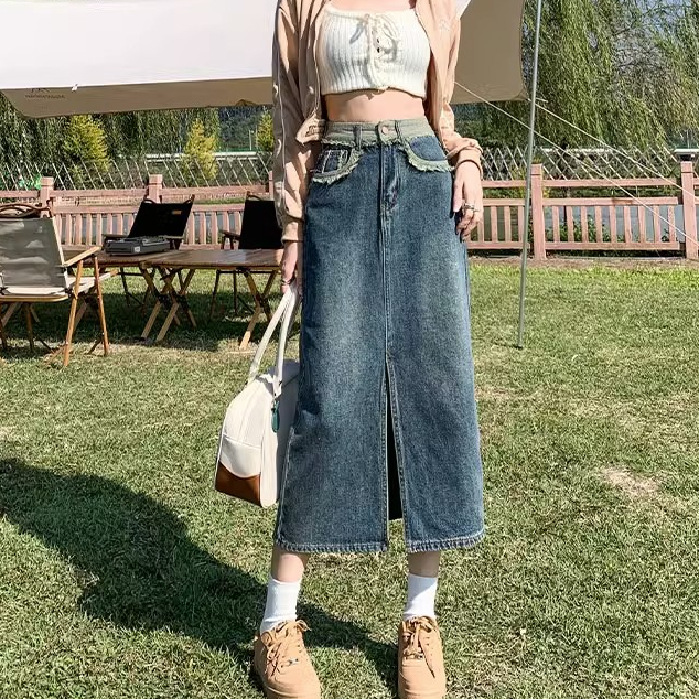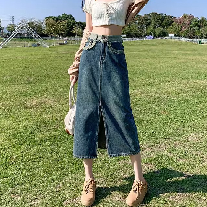 | nameOriginal | Split High Waist Retro Denim Skirt Women's 2024 New Spring and Autumn Design Sense Small A- Line Hip Dress |