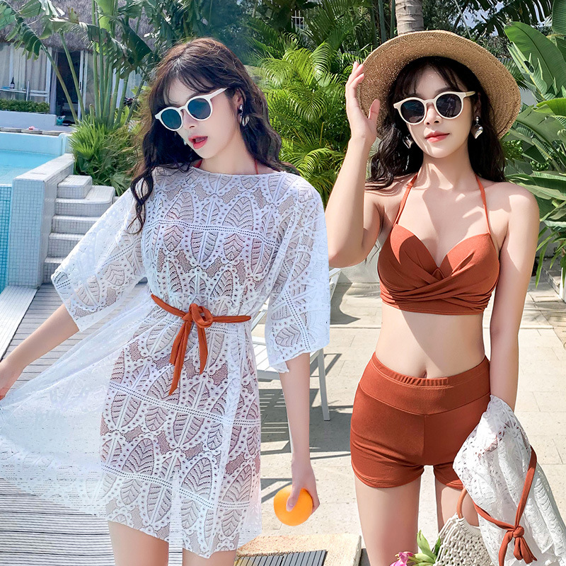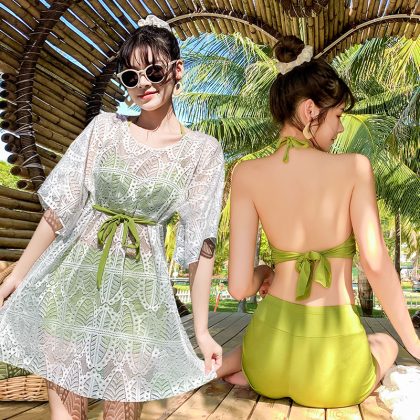 Split Swimsuit Women’s Slim with Steel Bracket Gathered Three-Piece Set Sexy Pure Sweet Girl Swimsuit Hot Spring Wholesale