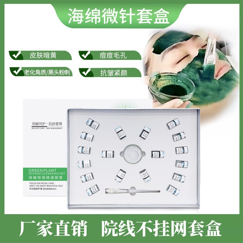 | nameOriginal | Sponge micro needle set box for beauty salon special shrink pores small green film acne marks acne pit bone needle freeze-dried powder microcrystalline powder |