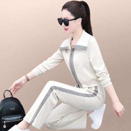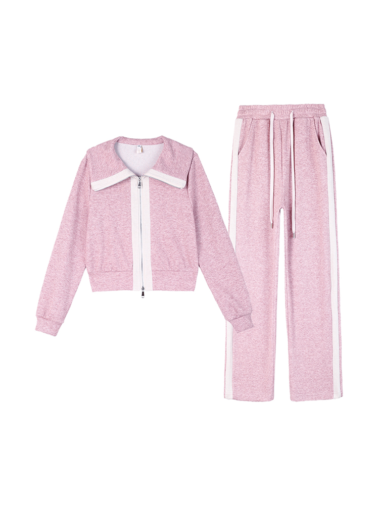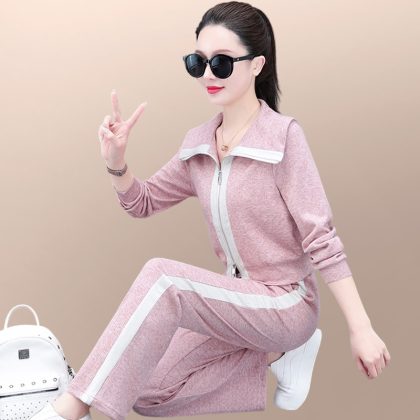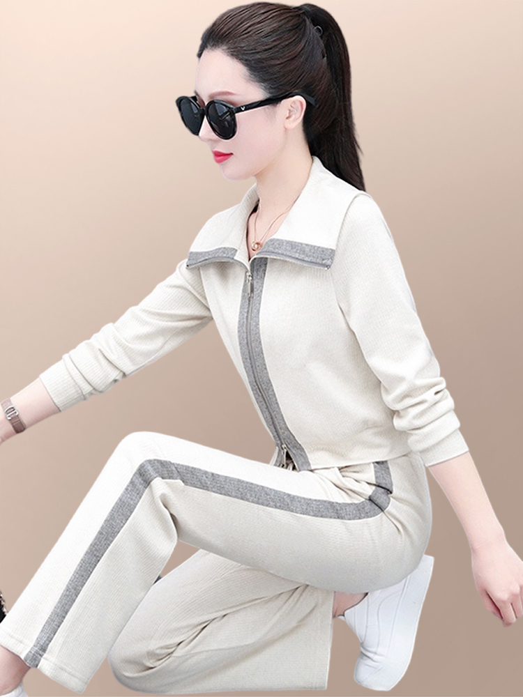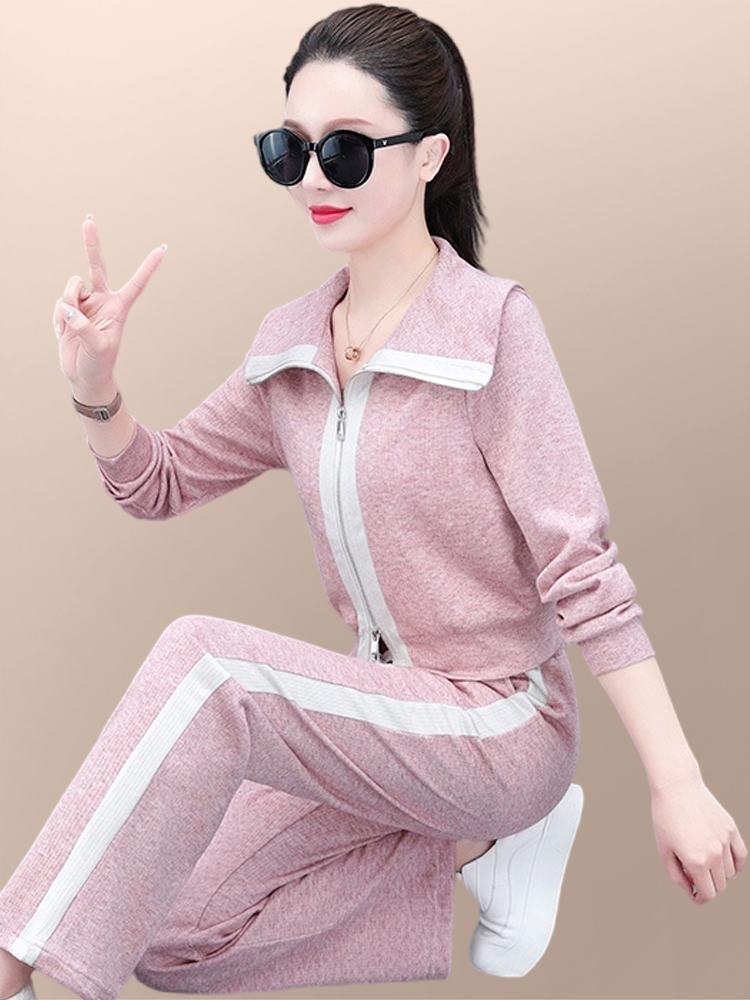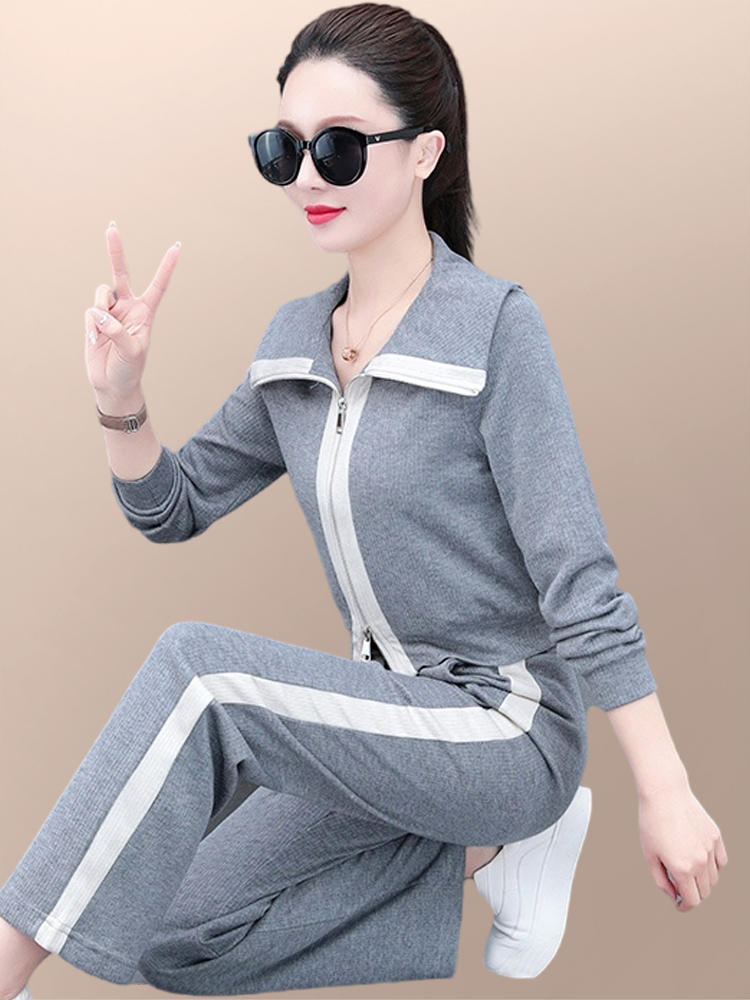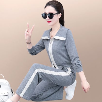 | nameOriginal | Sports Casual Suit Women's Spring and Autumn 2023 New Fashion Stylish Lapel Sweater Wide Leg Pants Running Suit Two-Piece Set |