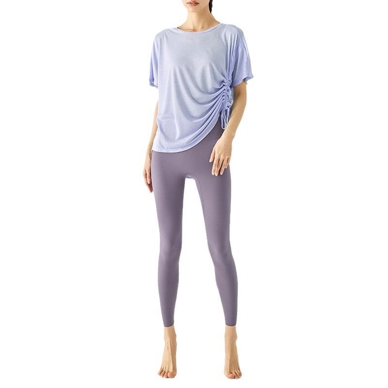 | nameOriginal | Sports Comfortable Round Neck Drawstring Loose Breathable Thin Short T-Shirt Yoga Top Blouse for Summer |