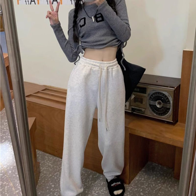 | nameOriginal | Sports Pants Women's Autumn and Winter Loose plus size Casual Pants fleece-lined Trendy Outer Wear Slim Grey Sweatpants |