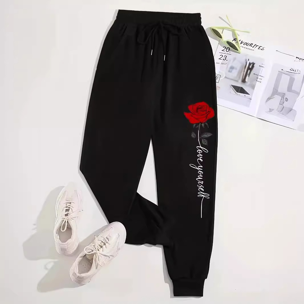 | nameOriginal | Sports Pants Women's Spring and Autumn High Waist Slimming Drawstring Printed Simple Casual Pants All-match Fashionable Leg-toe Sports Pants Trousers |