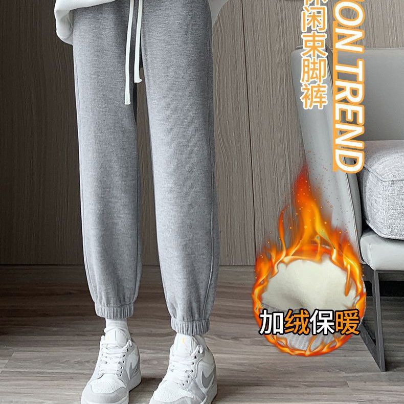 | nameOriginal | Sports pants women's spring autumn and winter loose toe 2023 new high waist slimming plus velvet gray cotton casual pants |