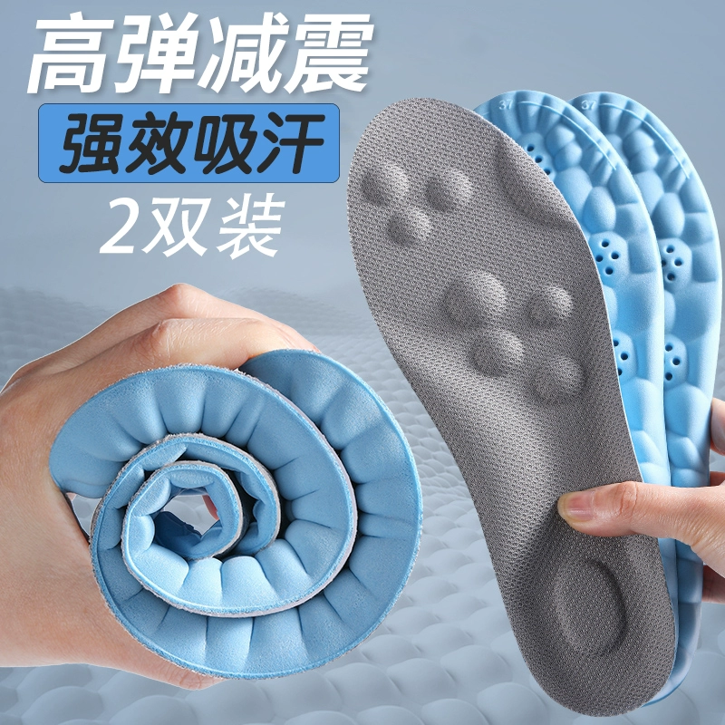 Sports shock-absorbing insoles for men, sweat-absorbent, anti-odor, breathable, summer, poop-feeling latex insoles for women, soft soles, comfortable to stand for a long time without getting tired