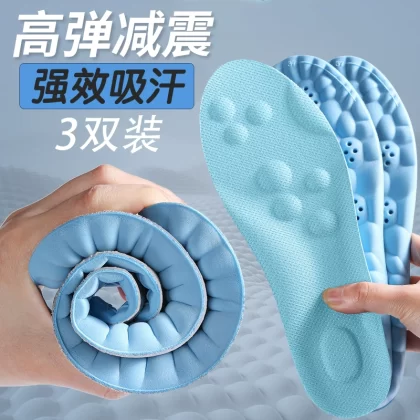 Sports shock-absorbing insoles for men, sweat-absorbent, anti-odor, breathable, summer, poop-feeling latex insoles for women, soft soles, comfortable and not tired after standing for a long time