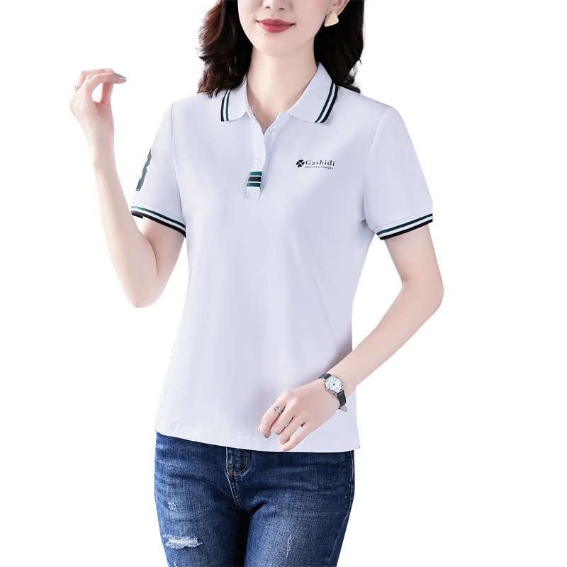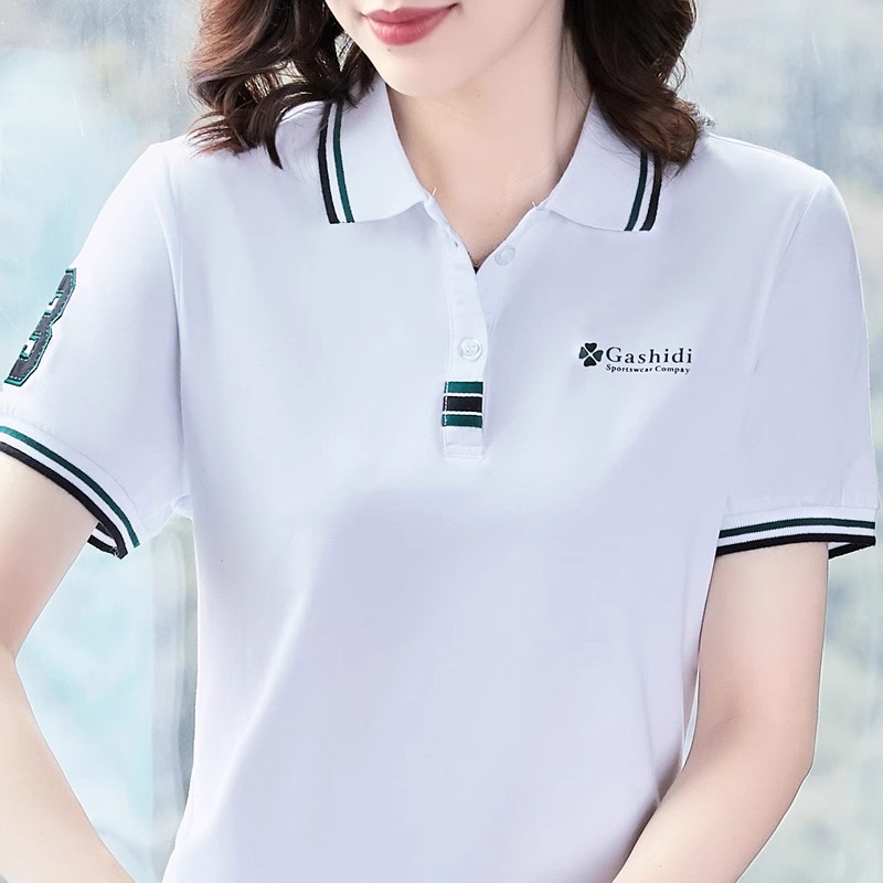 | nameOriginal | Sports Short-sleeved T-shirt Women's Summer Fashion Age-reducing Elegant Middle-aged Mom Polo Shirt Loose White Half-sleeved Lapel |