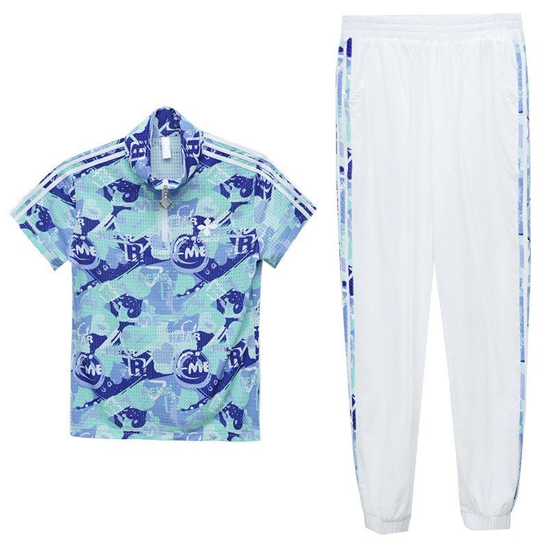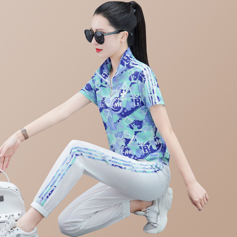 | nameOriginal | Sports Suit Women's Summer 2023 New Western Style Slim Color Lace Collar Short Sleeve Trousers Casual Running Two-piece Suit |