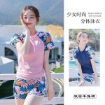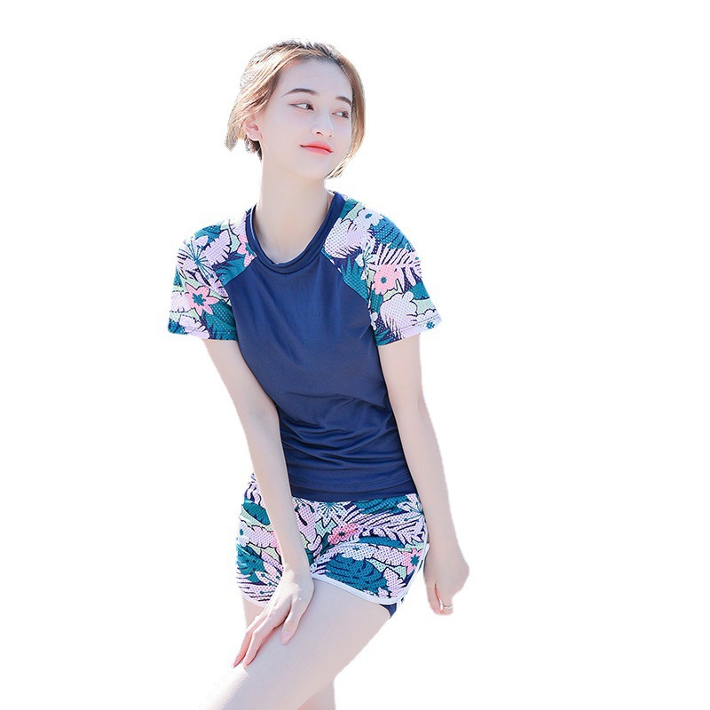 Sports Swimsuit Women's Summer Split Conservative Swimsuit Two-Piece Belly-Covering Slimming Seaside Sunscreen Swimsuit Short-Sleeved Swimsuit