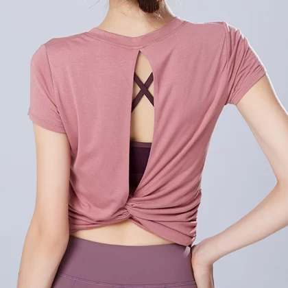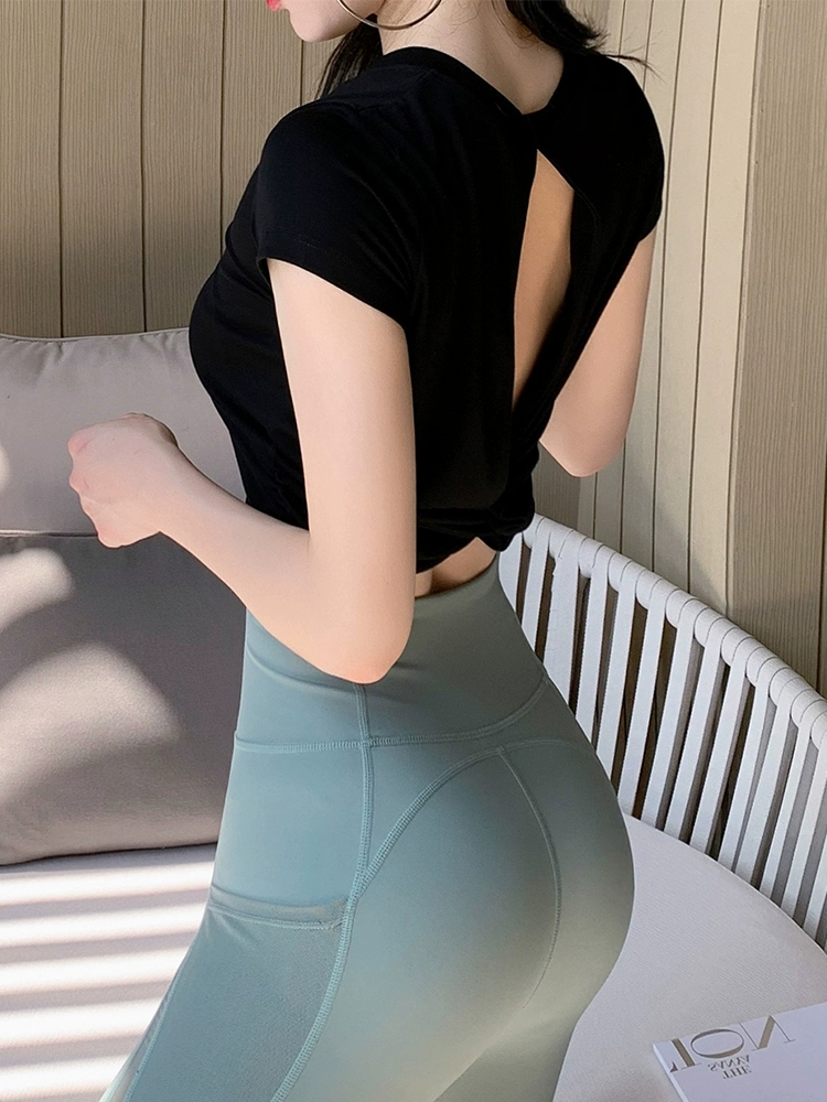 Sports tops, feminine, hollow, beautiful back, gym quick-drying clothes, summer thin training yoga clothes, short-sleeved T-shirts