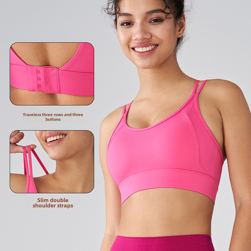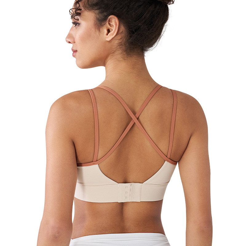 | nameOriginal | Sports underwear women's thin shoulder strap contrast color vest fixed integrated cup quick-drying fitness clothes running yoga beauty back bra |