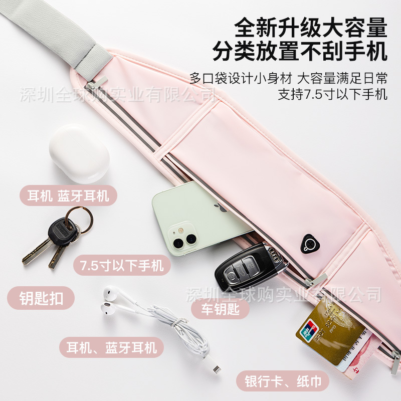 Sports Waist Bag Multifunctional Outdoor Running Mobile Phone Men’s and Women’s Fitness Waterproof Invisible Three-Pocket Lycra Ultra-Thin Waist Bag