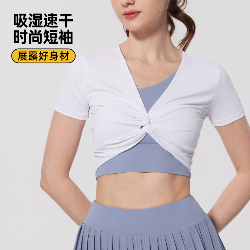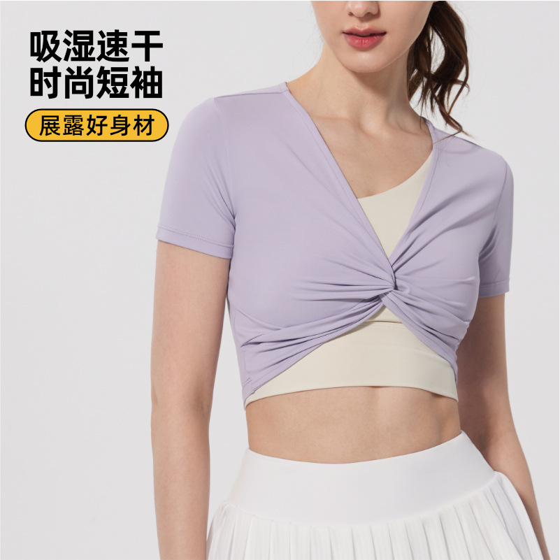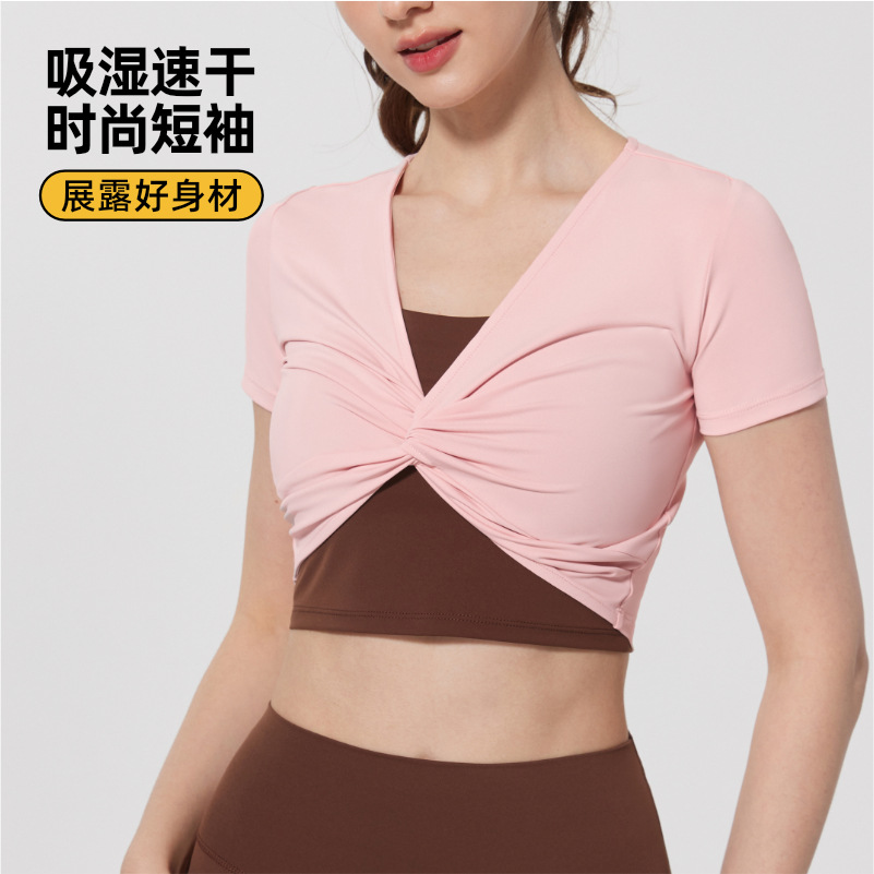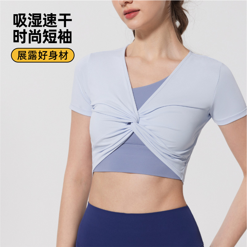 | nameOriginal | Sports Yoga T-shirt Running Fitness Personalized Short-sleeved Sexy Navel Fashion Fitness Clothes Women's Quick-drying Running Yoga |