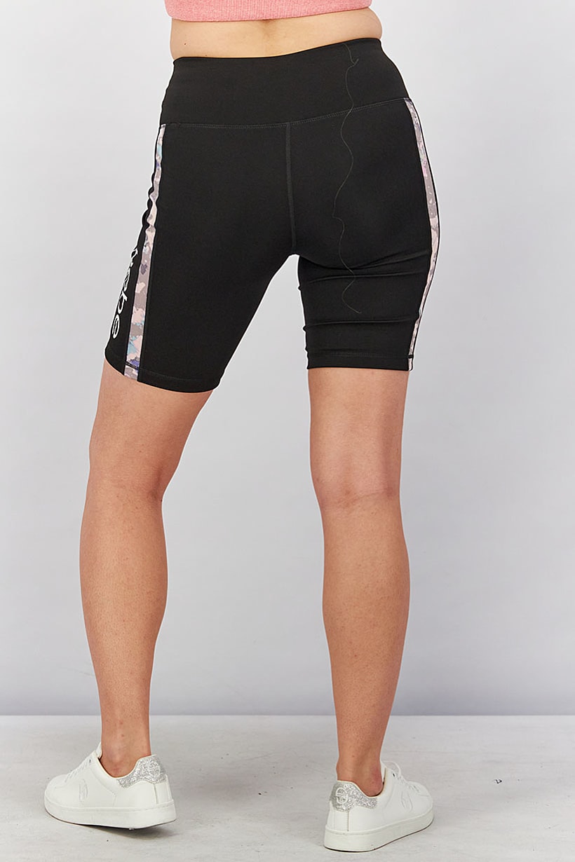 | descriptionOriginal | Bottom Hem : Straight, Care : Machine washable, Fit : Sportswear Fit, Ideal For : Women, Size shown : International, Thickness : Light, Type of Sport : Training, Types of Hem : Straight hem, Bottom Closure : Pull on, Disclaimer : Product color may slightly vary due to photographic lighting sources or your monitor settings., Fabrics : 87% Polyester, 13% Spandex, Occasion : Sport, Pattern & Print : Graphic print, Brand Logo, Sportswear Type : Shorts, Types of Closures : Pull on, Color Family : Black, |