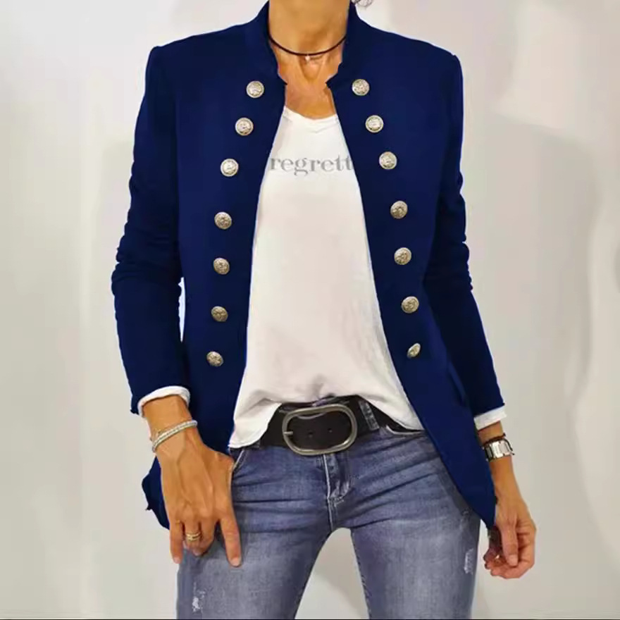 | nameOriginal | Spot 1618#2022 new Europe and the United States autumn and winter solid color collar cardigan button decorative casual coat |