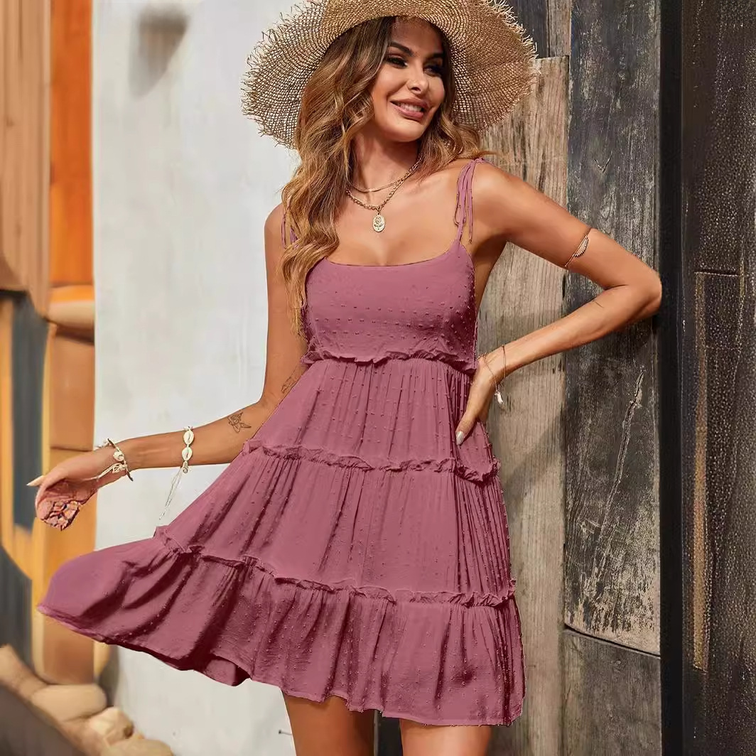 | nameOriginal | Spot 2023 Amazon New Sexy Beach Vacation Dress Jacquard Polka Dot European and American Strap Skirt Women |