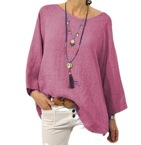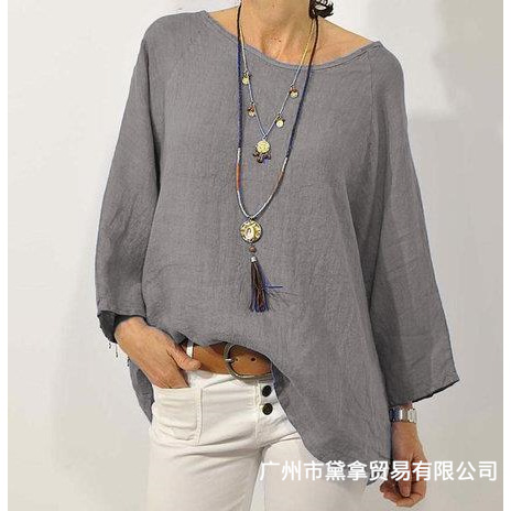 | nameOriginal | Spot 2023 Cross-border European and American Foreign Trade Women's Top Solid Color Cotton and Linen Round Neck Raglan Sleeve Nine-sleeve Blouse |
