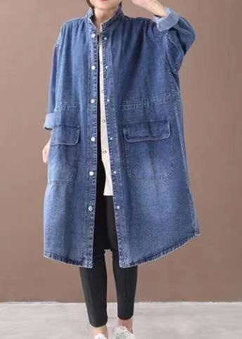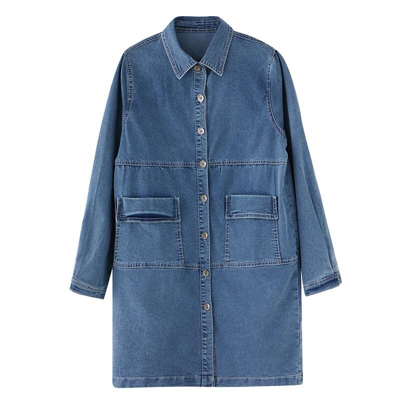 Spot 2023 New Fashion All-match Slim Denim Shirt Dress Korean Style Temperament Hong Kong Style Retro Single-breasted Jacket