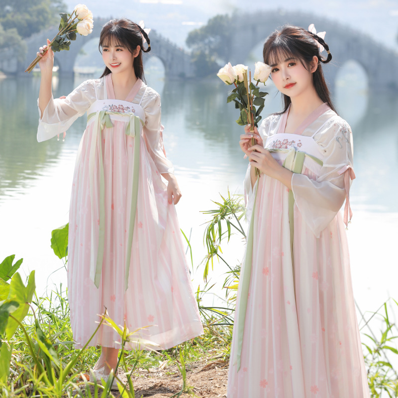 Spot 2023 Original New Daily Chinese Elements Guofeng Super Fairy Sweet Fairy Chest Slimming Hanfu Two-Piece Set