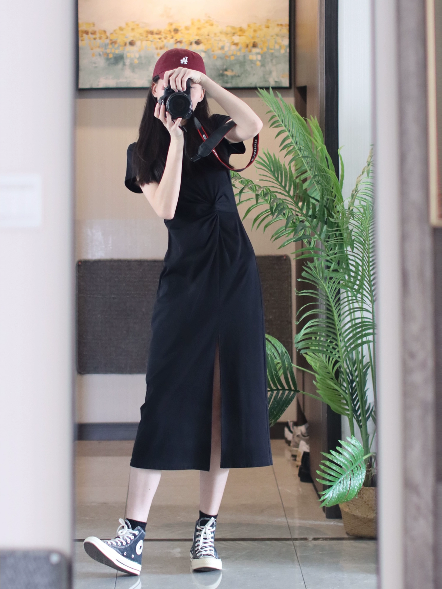 | nameOriginal | Spot 24 summer French style pleated slit short-sleeved T-shirt dress slim and versatile long skirt hip skirt for women |