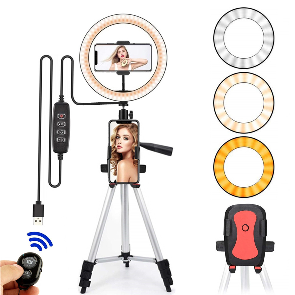 Spot 26cm ring lamp aluminum alloy live tripod live beauty lamp with mobile phone bracket with remote control