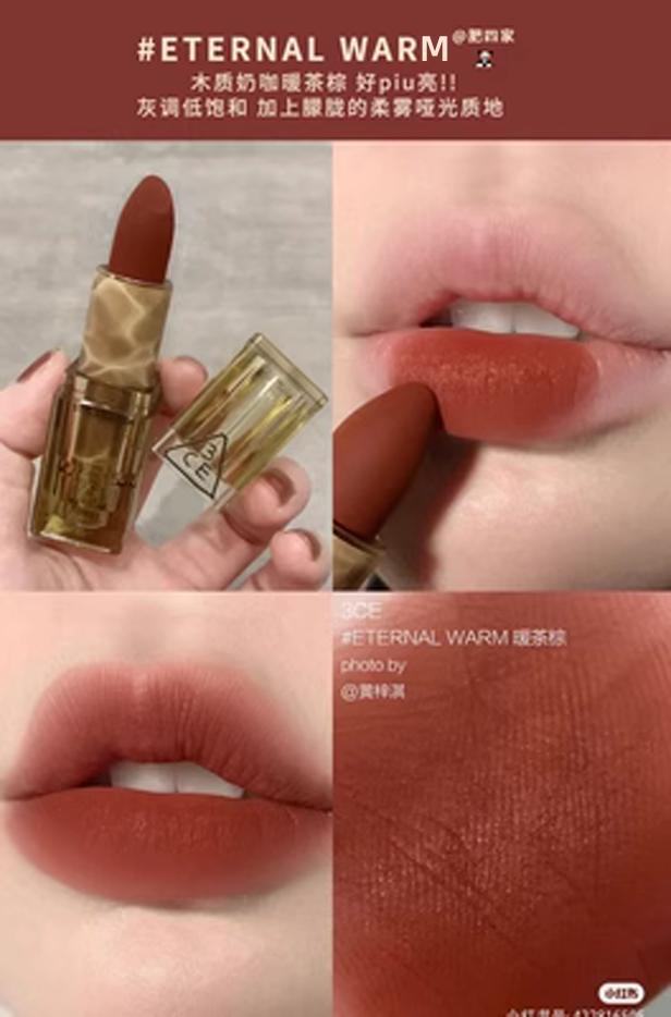 | nameOriginal | Spot 3CE lipstick lip glaze affordable student niche matte matte velvet retro matte lipstick Korea |
