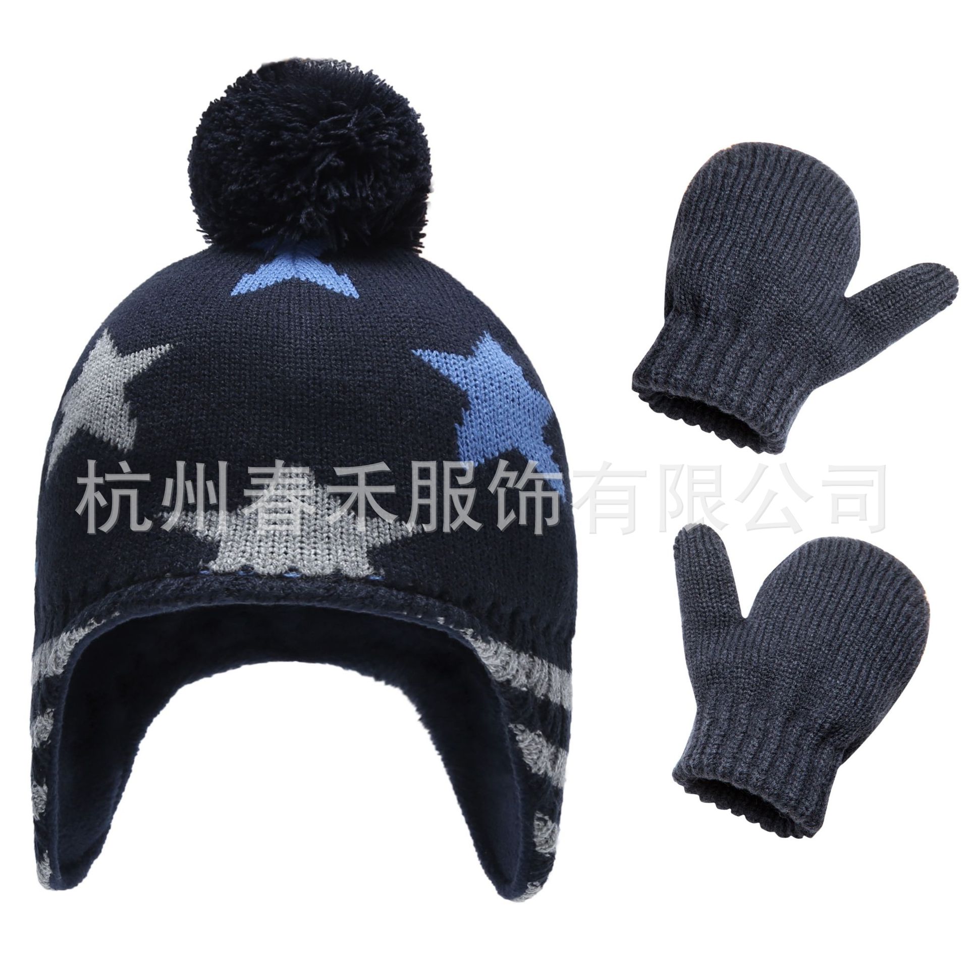 | nameOriginal | Spot 5 Color 3 Size Children's Knitted Hat Gloves Set Autumn and Winter Cartoon Jacquard Finger Ear Protection Five-pointed Star |