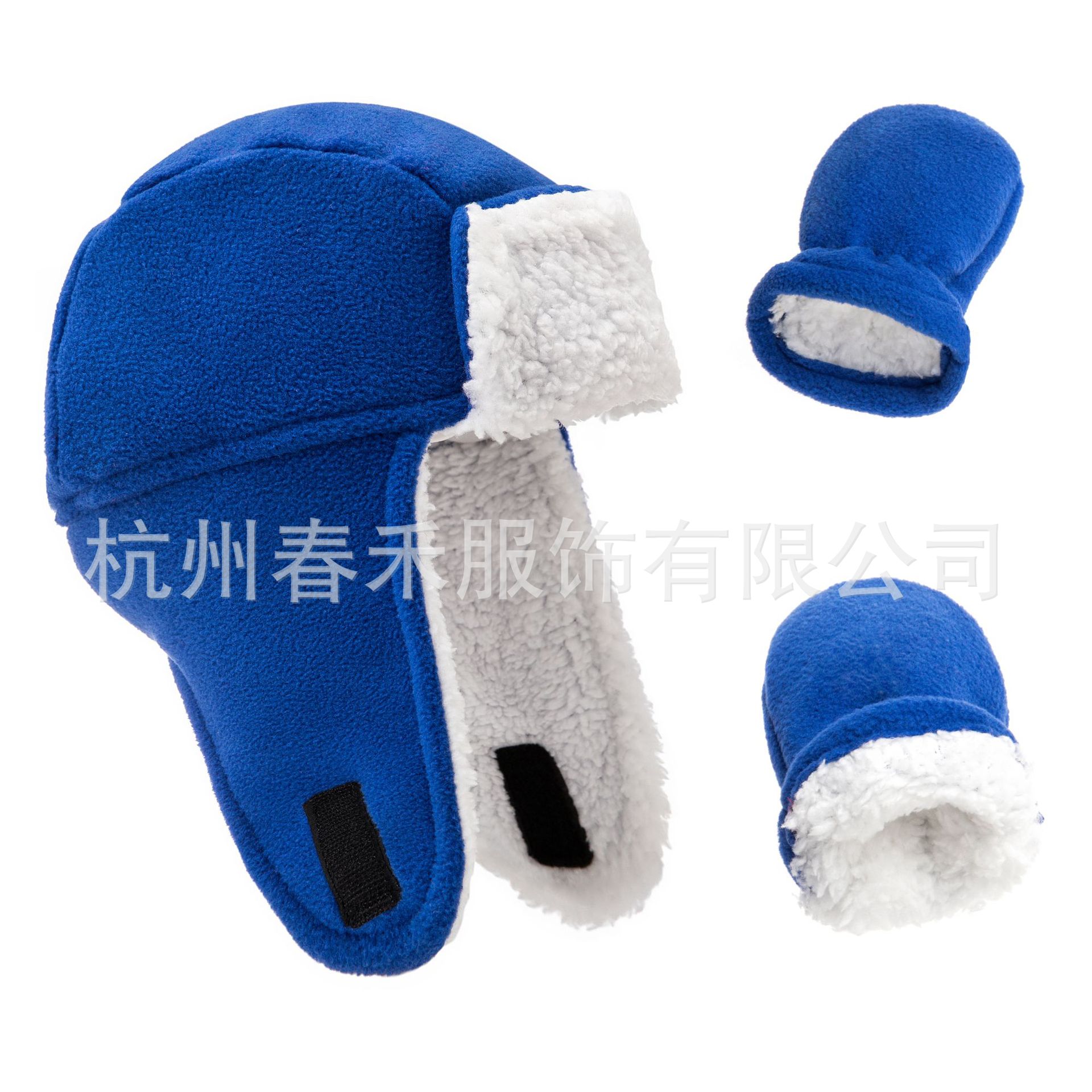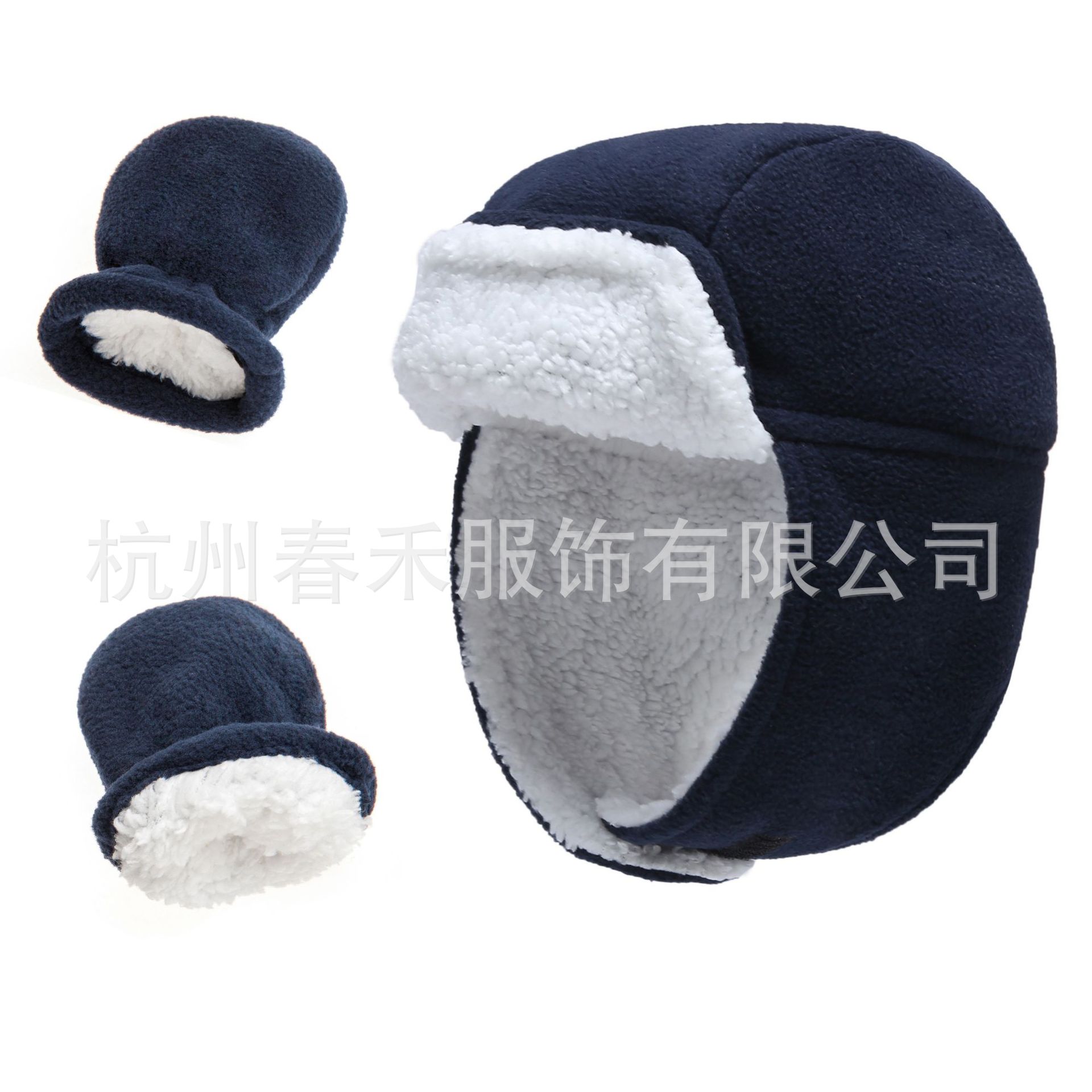Spot 9-color 3-yard cross-border e-commerce supply children's polar fleece Lei Feng cap cotton wool gloves mittens 2-piece set