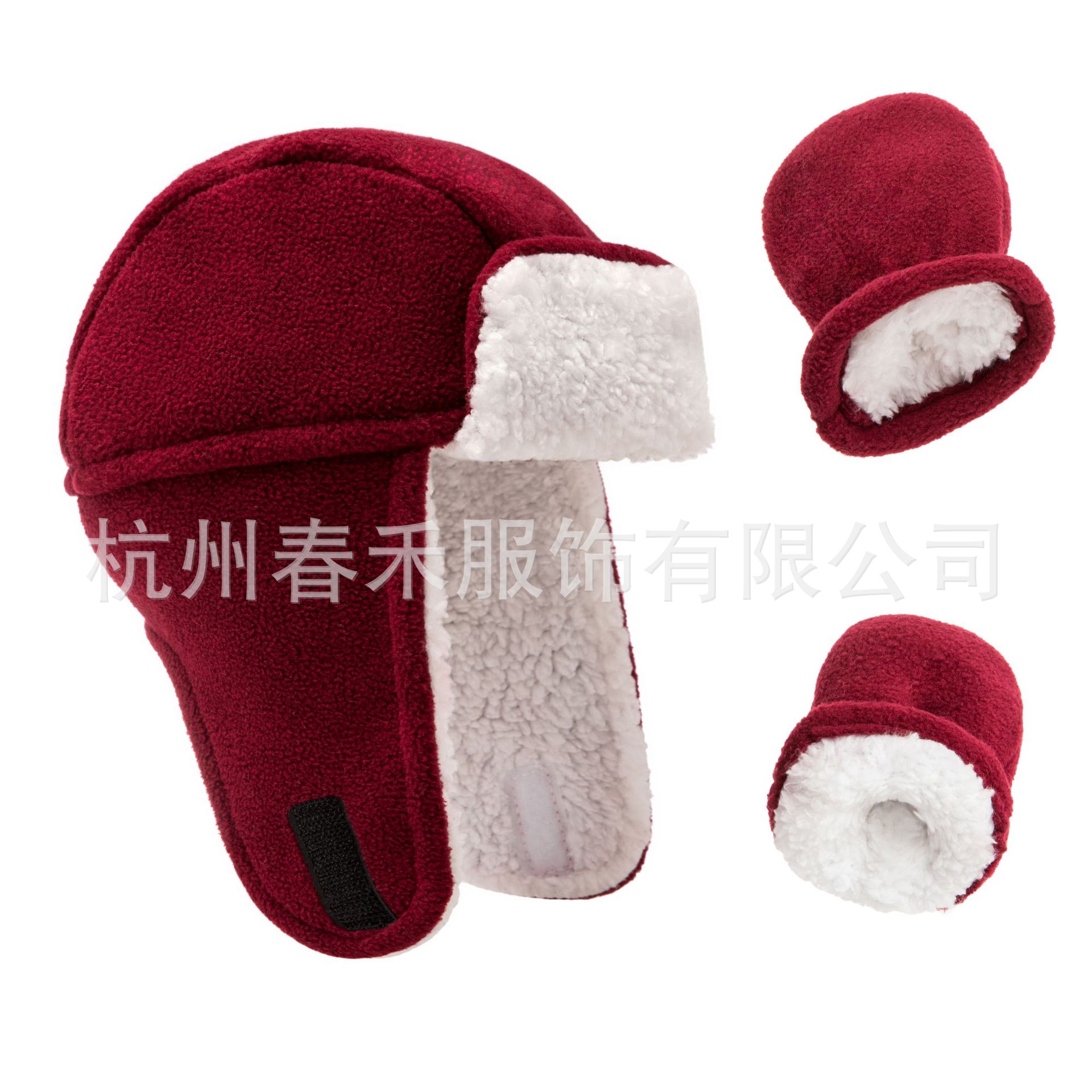 Spot 9-color 3-yard cross-border e-commerce supply children’s polar fleece Lei Feng cap cotton wool gloves mittens 2-piece set
