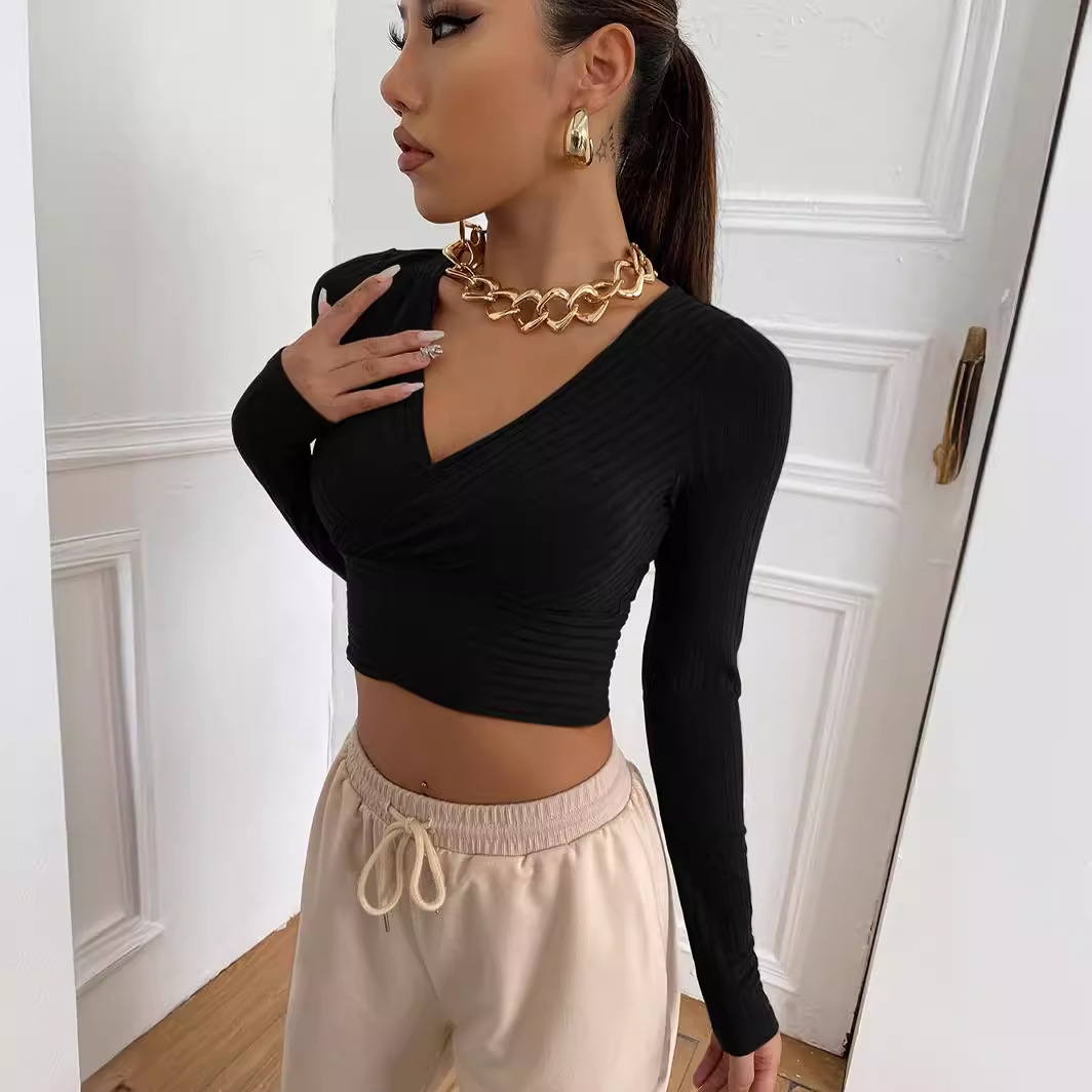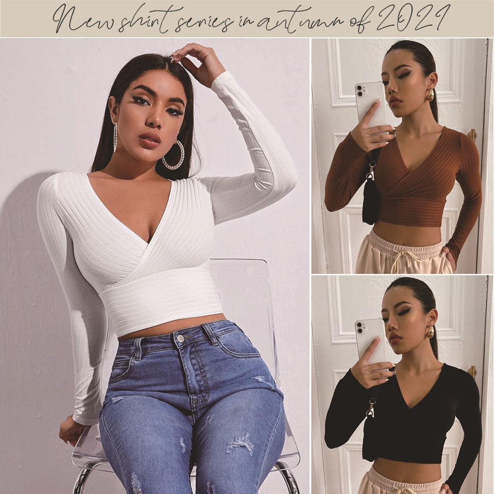 | nameOriginal | Spot Amazon Cross-border European and American Autumn and Winter New V-neck Turtleneck Solid Color Sexy Commuting Slim T-shirt Women's Base Shirt |
