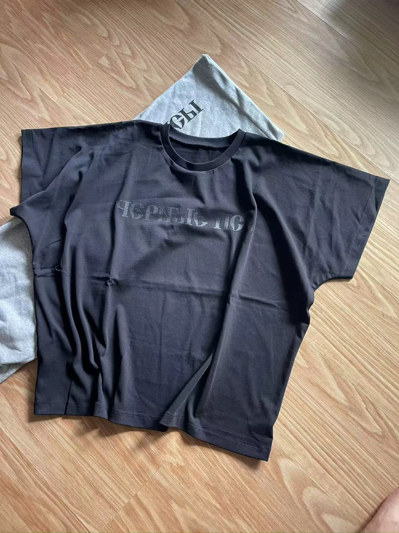 | nameOriginal | Spot black dog loose American gray short sleeve slogan |