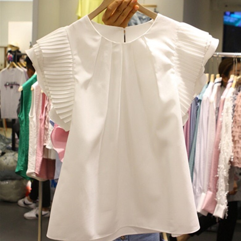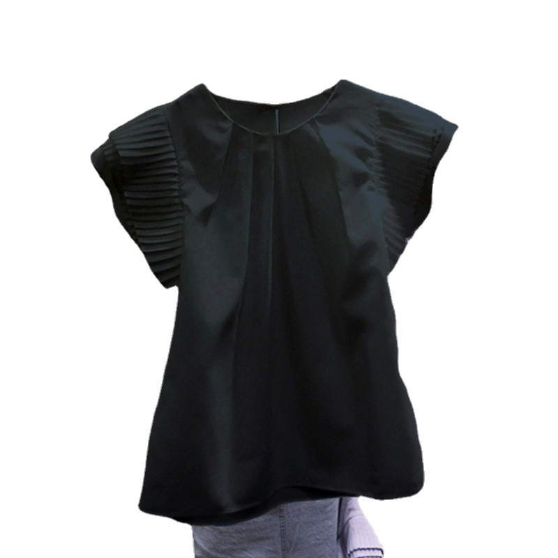 | nameOriginal | Spot cross-border 2022 New loose stitching pleated wooden ear small fly sleeve chiffon short sleeve shirt Women |