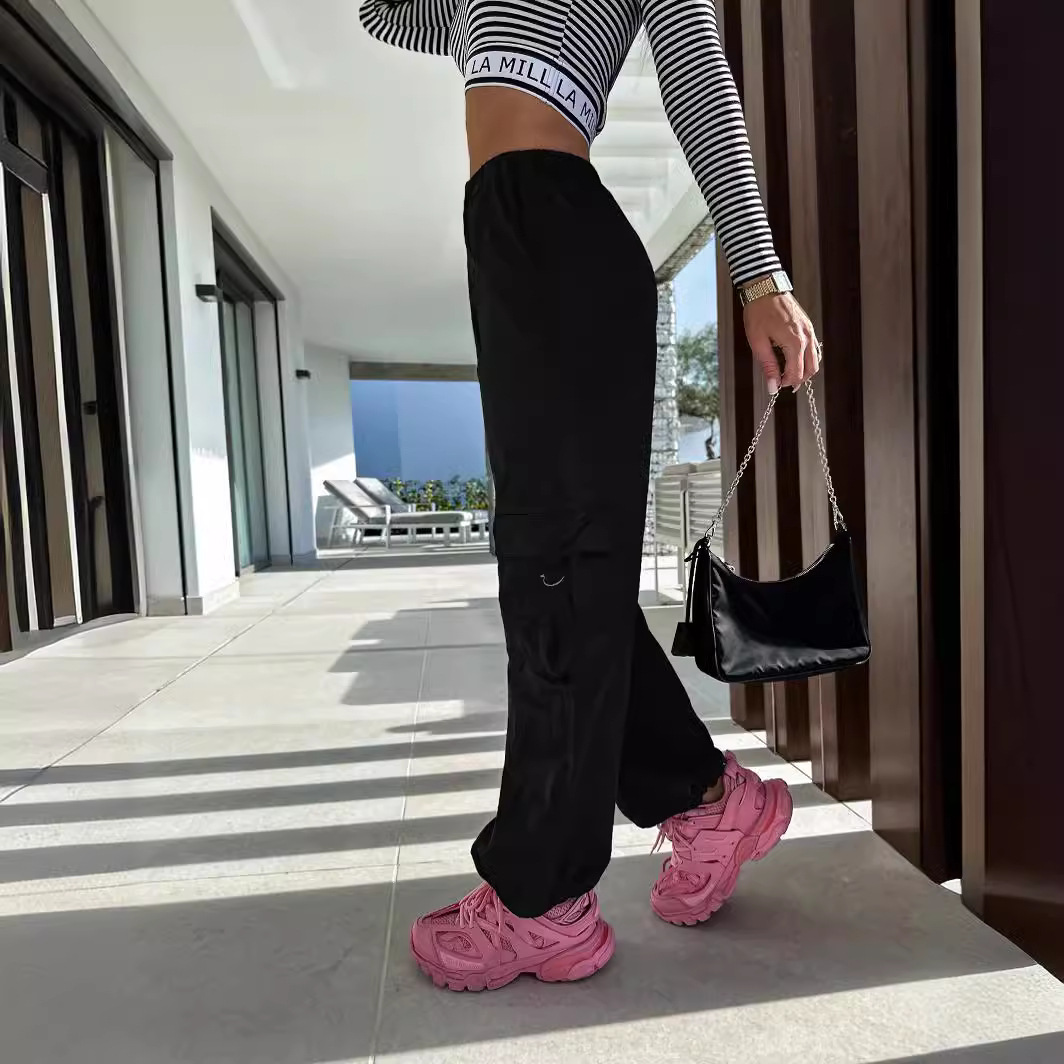 | nameOriginal | Spot Cross-border Trendy Women's Pants Street Covers Multi-pocket Lace-up Pants Metal Buckle Loose Straight Leg Trousers |